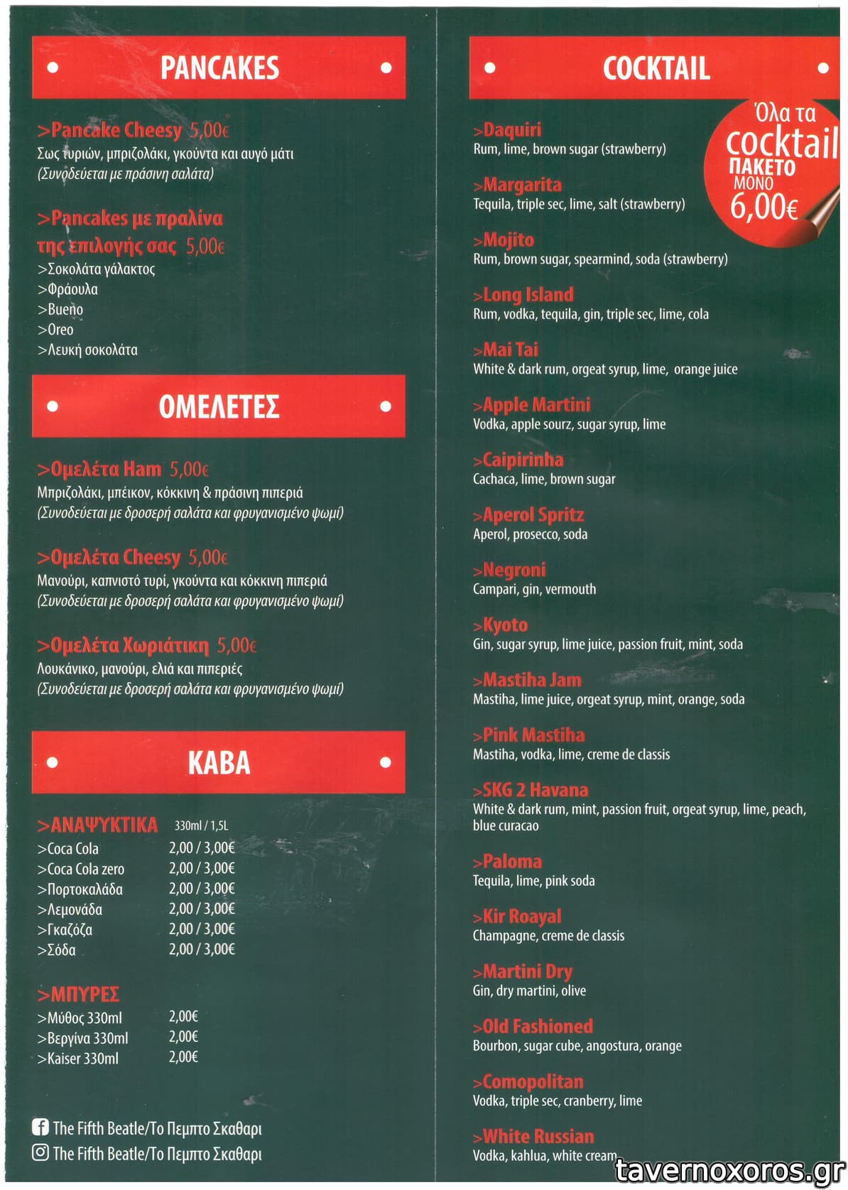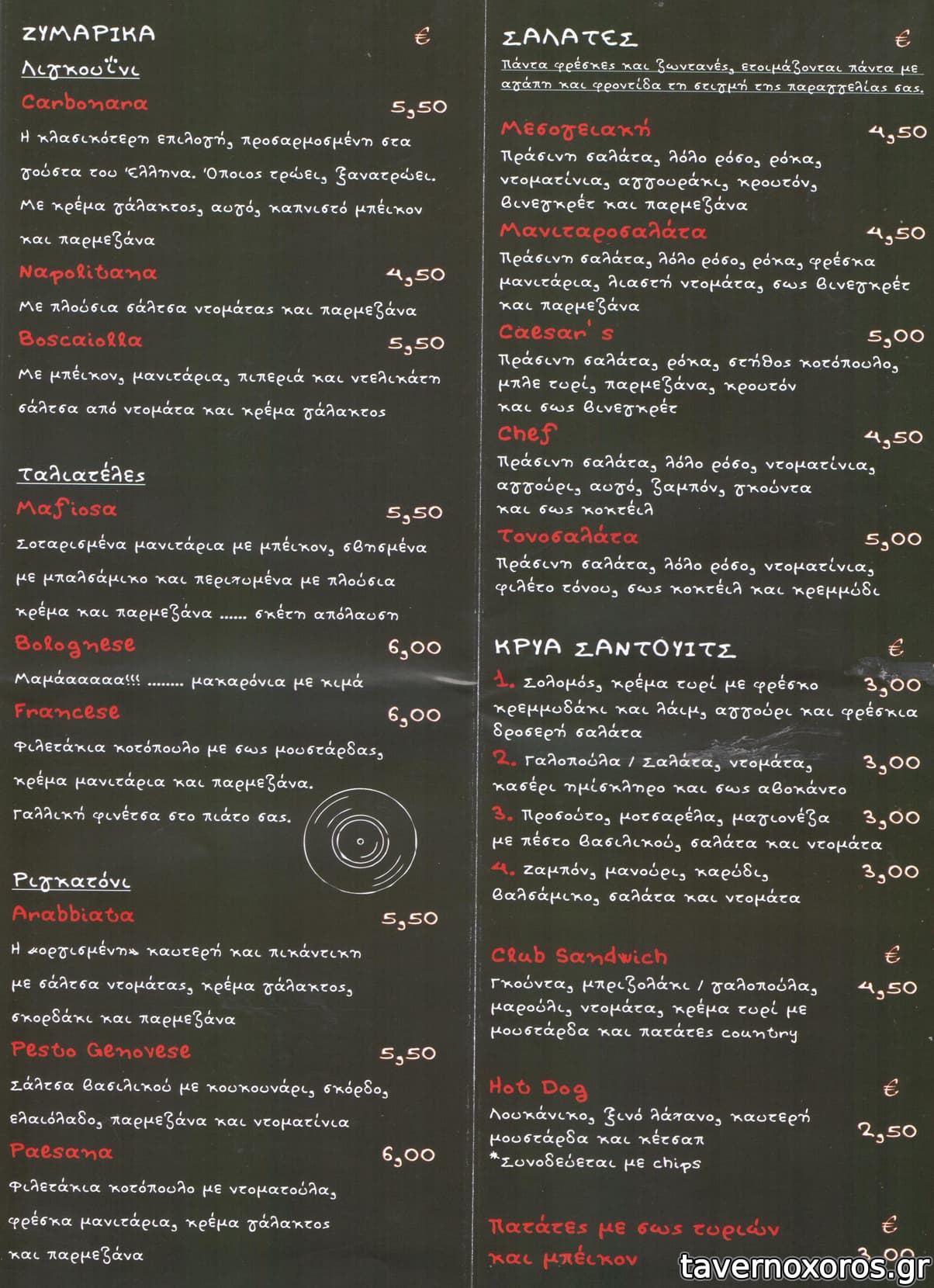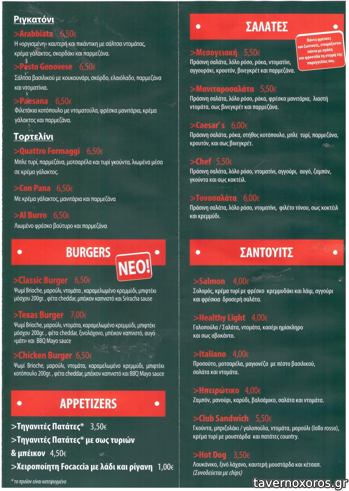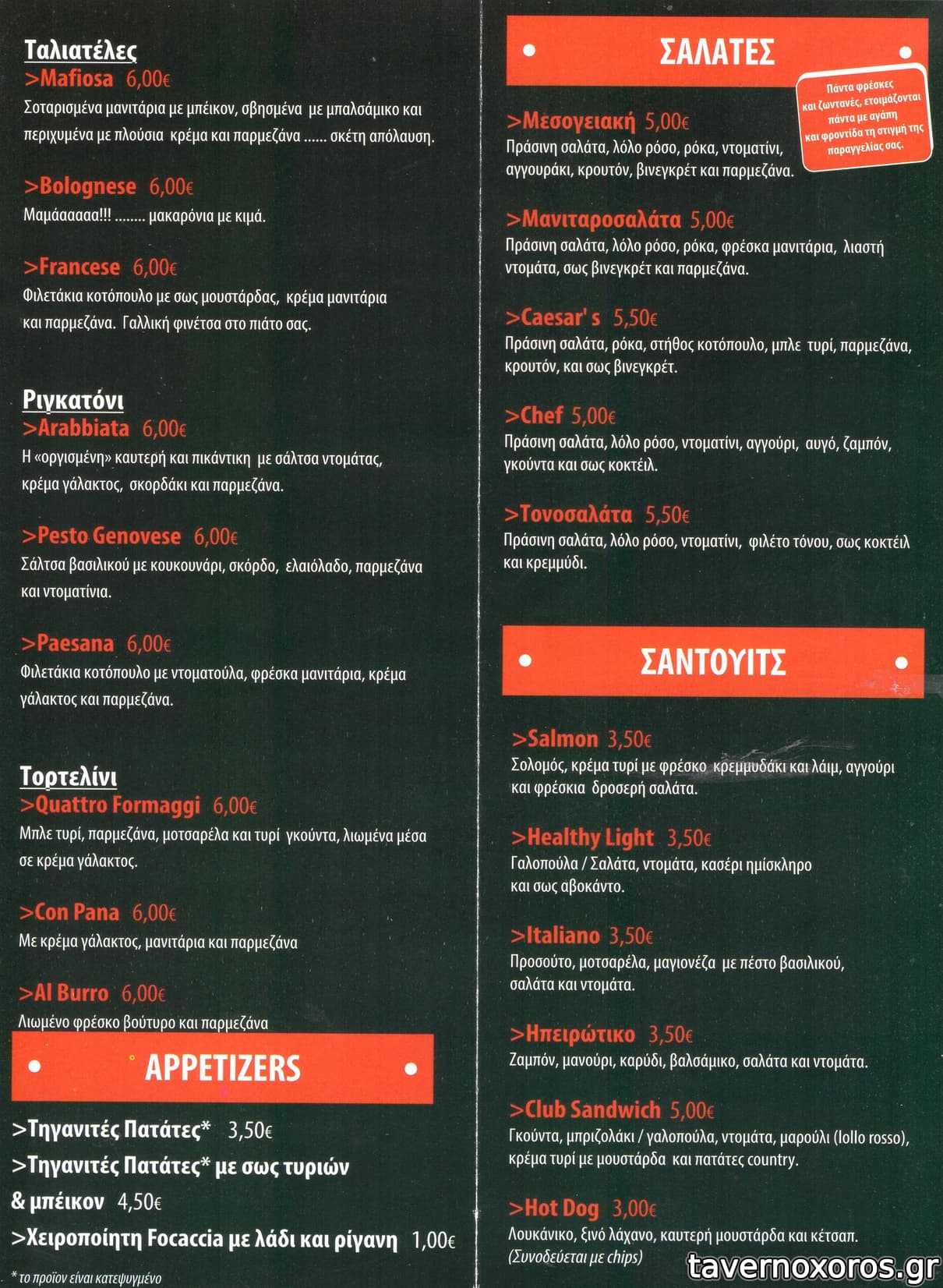 Το μαγαζί έχει πίτσες, μακαρονάδες και 2 burger τα οποία είναι πολύ καλά δεδομένων των συνθηκών (χαμηλές τιμές, και ουσιαστικά μιλάμε για cafe/bar). Οι τιμές τόσο στο φαϊ όσο και στα ποτά/ροφήματα είναι πολύ καλές. Παίζει και κέρασμα πίτσας αρκετά συχνά αν κάνεις κατανάλωση ή/και σε ξέρει. Ο Ιδιοκτήτης ήταν και μέχρι πρότινος ο ιδρυτής - κύριος μέτοχος του Ραλετάντο (τόσο στην παλιά όσο και στη νέα διεύθυνση).