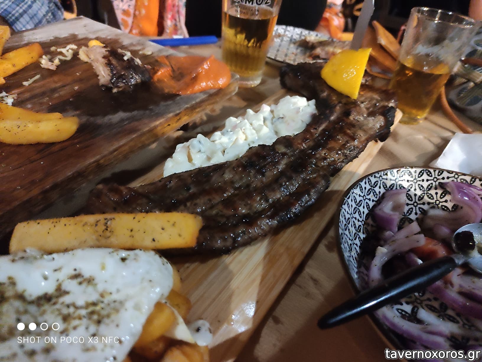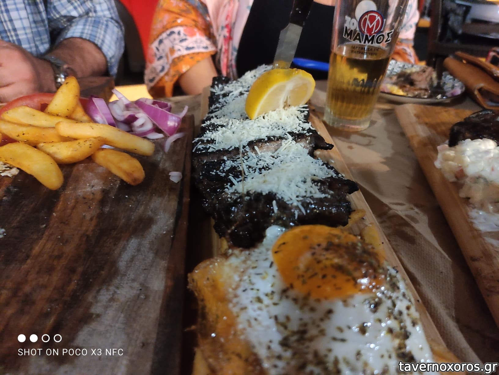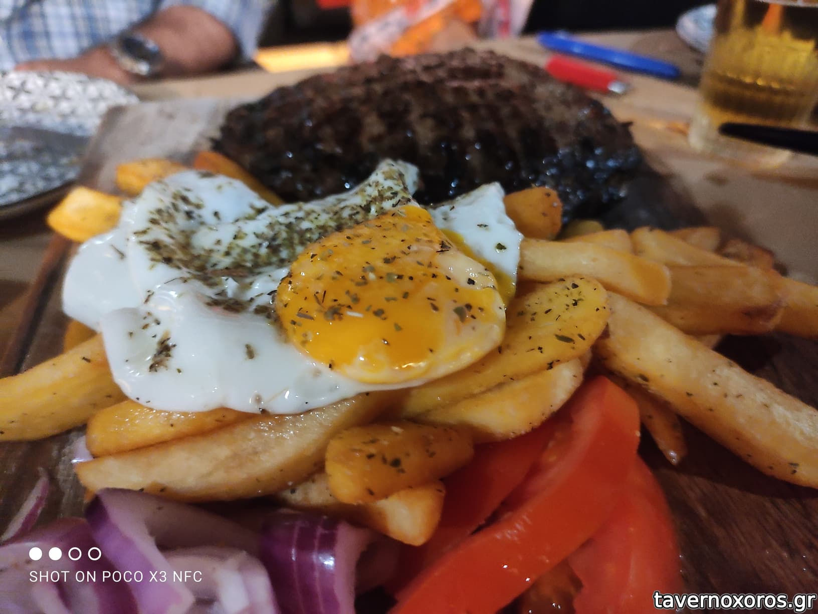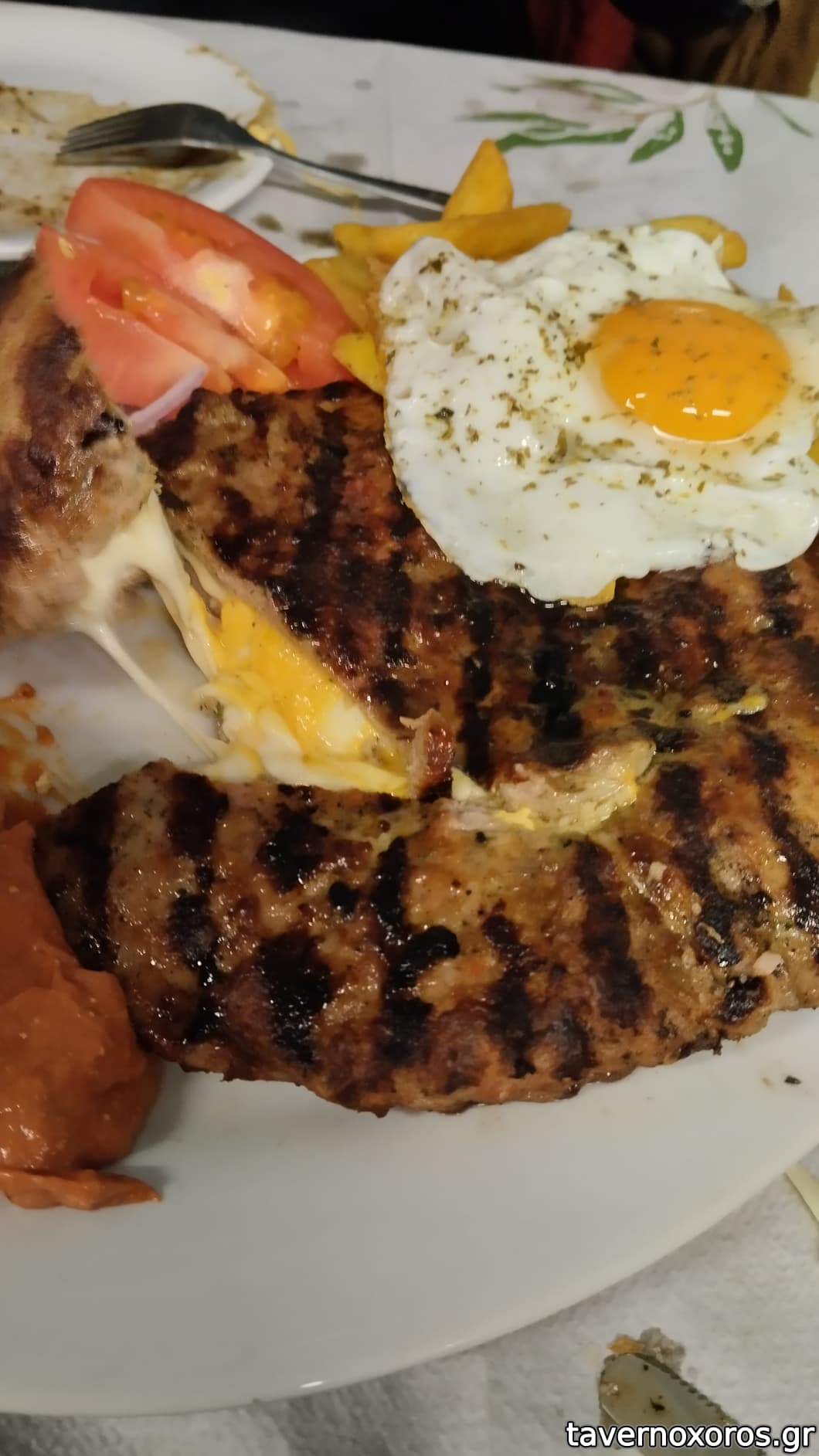 Οι μερίδες συνοδεύονταν όλες με επαρκή ποσότητα πατάτας τηγανητης, αλοιφής, και ενός τηγανητού αυγού!