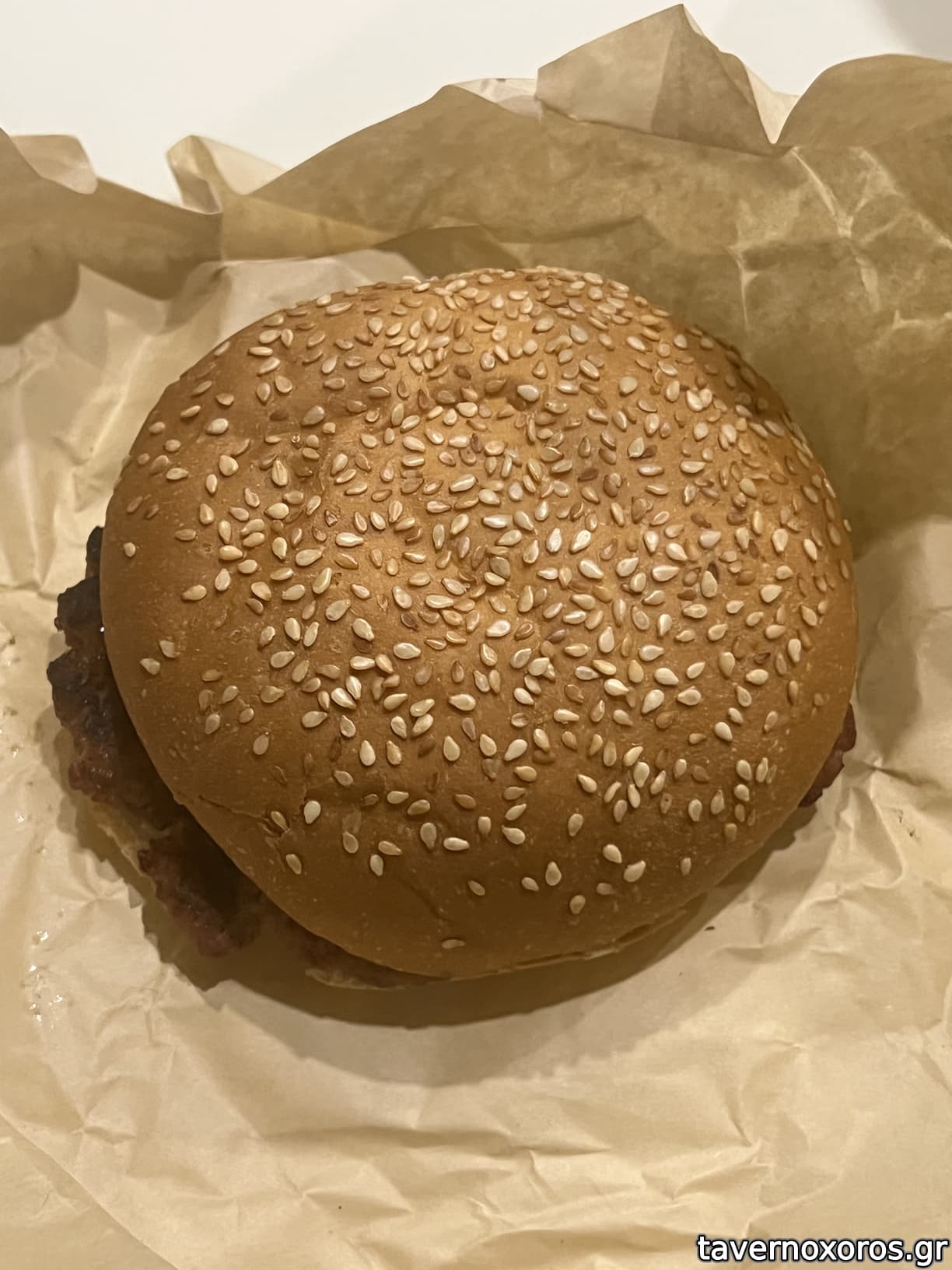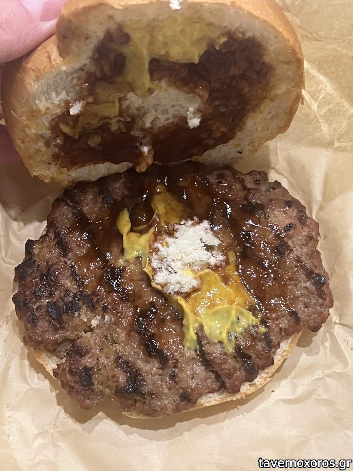 Αφού καταναλώθηκε σεβαστή ποσότητα ζύθου σε παρακείμενο ροκάδικο, είπαμε να κατευνάσουμε λίγο και τη λιγούρα μας κι επιλέξαμε το συγκεκριμένο ταχυφαγείο..αν και ο ορισμός αργοφαγείο ταιριάζει περισσότερο, χωρίς όμως να με χαλάει. Ευγενέστατος ο κύριος που το'τρεχε μόνος του (ιδιοκτήτης;), τον πετύχαμε να ζυμώνει μπιφτέκια, να ετοιμάζει παραγγελία για βολτ και ταυτόχρονα να τηγανίζει και πατάτες. Πήραμε 2 smashed μπεργκεράκια για επιτόπια κατανάλωση κι από 1 πίτα με σουβλάκι κοτόπουλο, για το σβήσιμο στο σπίτι..Τα μπεργκερακια υπέροχα, με απλή, καθαρή γεύση, χωρίς σάλτσες κι άλλα υλικά μέσα ενώ και το κοτοσουβλάκι ζουμερό, καλοψημένο μόνο με μουστάρδα-πατάτες. Αυτά τα 4 στα 9ευρώ, ξεπερνάει τον ορισμό του VFM..