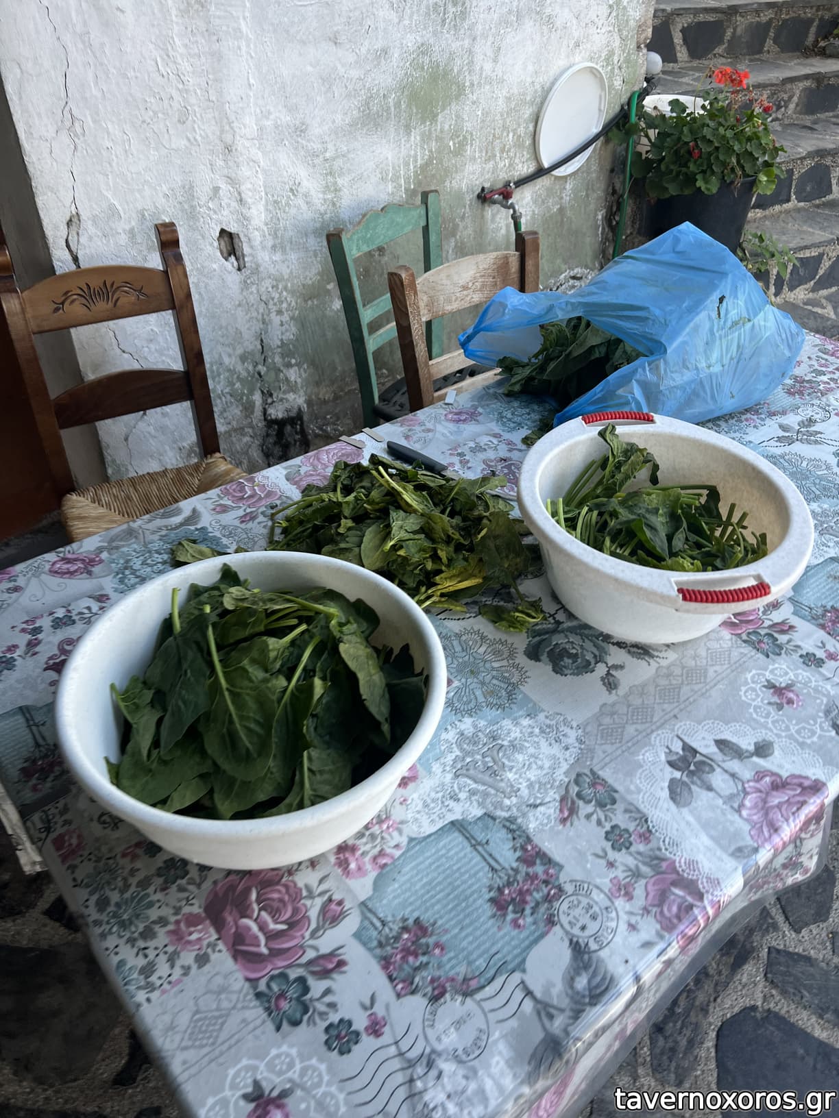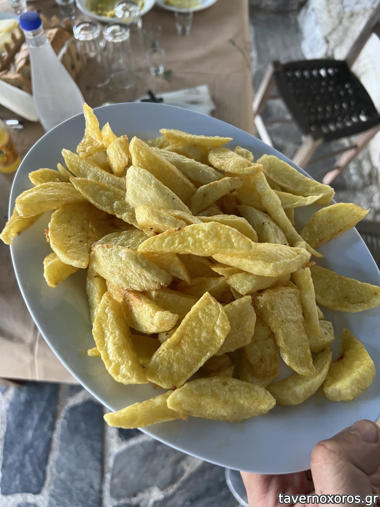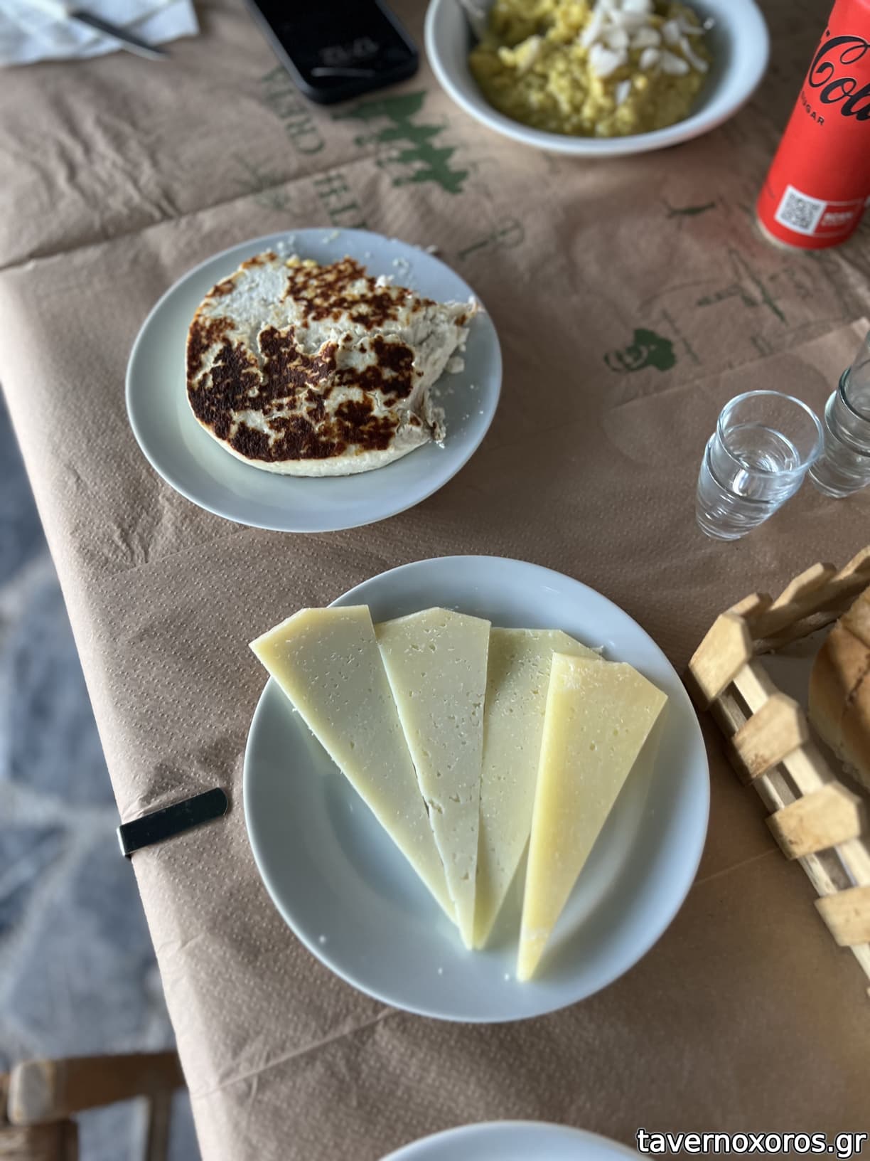 3 εξωτερικά τραπέζια στο σύνολο, κάτσαμε κάτω απ' τη μουριά ενώ παραδίπλα ήταν δυο ακόμα παρέες. ήσυχη μέρα με αεράκι, στο βάθος το οροπέδιο του Ασκύφου.