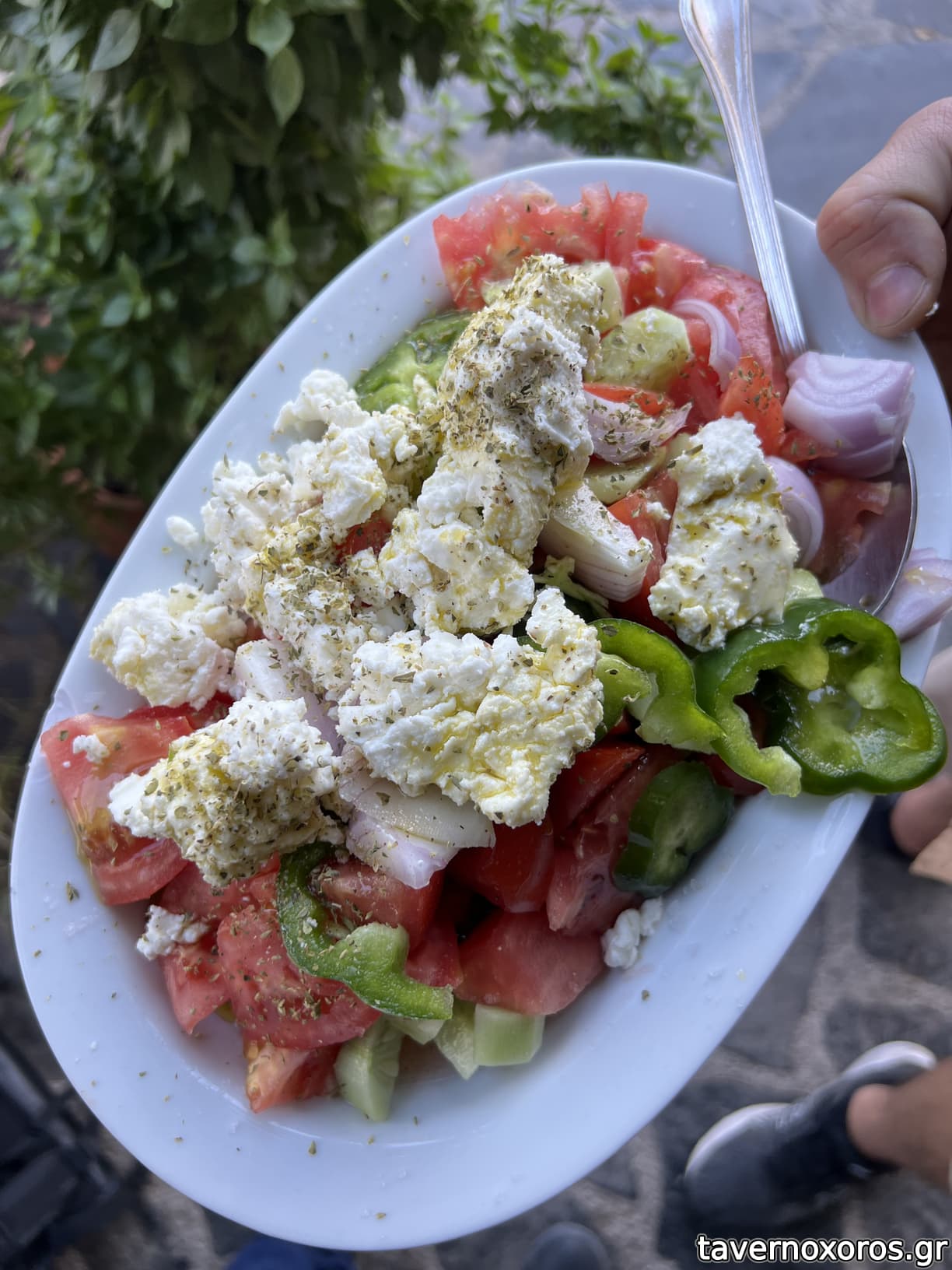 αυτά ήρθαν τελικά με τη βολιώτικη μέθοδο και την κρητική πληθωρικότητα: ντάκος, σαλάτα χωριάτικη (δεν θυμάμαι νοστιμότερη ντομάτα), αποξηραμένες μπάμιες κοκκινιστές πάνω σε τηγανητές πατάτες (!), μπουρέκι χανιώτικο και 2 τσιγαριαστά (με στάκα και κοκκινιστό). όλα απ' τον τόπο τους, όπως μας είπε ταπεινά.