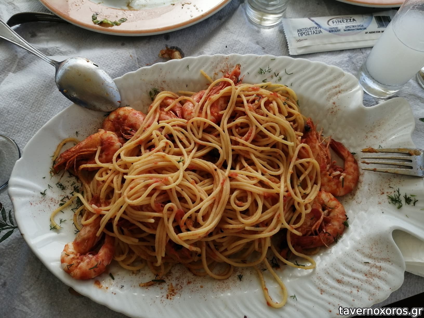 Φρέσκες τηγανητές σουπιές, φρέσκιες σκορδατες γαριδες (η ξακουστη γάμπαρη του Αμβρακικού κόλπου), χωριάτικη σαλάτα σε γαβάθα, πατάτες φρεσκοκομμενες σπιτικιές, μπόλικο ψωμί, μπυρες και τσιπουρα, 2 άτομα, μόνο 50 ευρώ, και λέω μόνο γιατί με αυτές τις ποσότητες και την φρεσκάδα, αλλού θα τα πλήρωναμε διπλά! (στο 50ευρω σε ψαροταβέρνα συνήθως τρως κατεψυγμένα και σαλάτα χωρίς γευση)! Αξίζει την 20 λεπτη διαδρομή από το κέντρο της Αρτας, για να επισκεφτείς το "