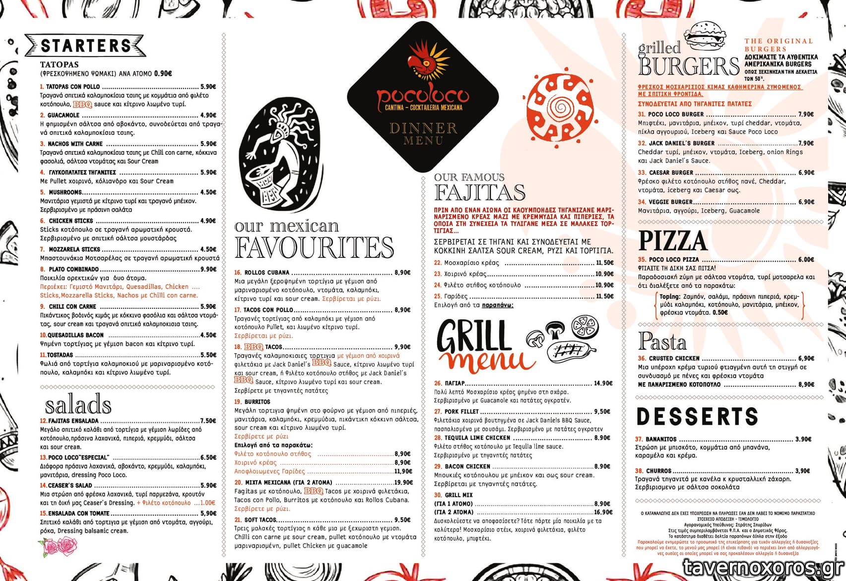 | Λέξεις κλειδιά | Πόκο Λόκο, #cocktails, #μεξικάνικο, #cafe-bar, #αυλή, #πάρκο, #πίτσα, #burgers, #tacos, #quesadillas, #burritos, #ζυμαρικά |