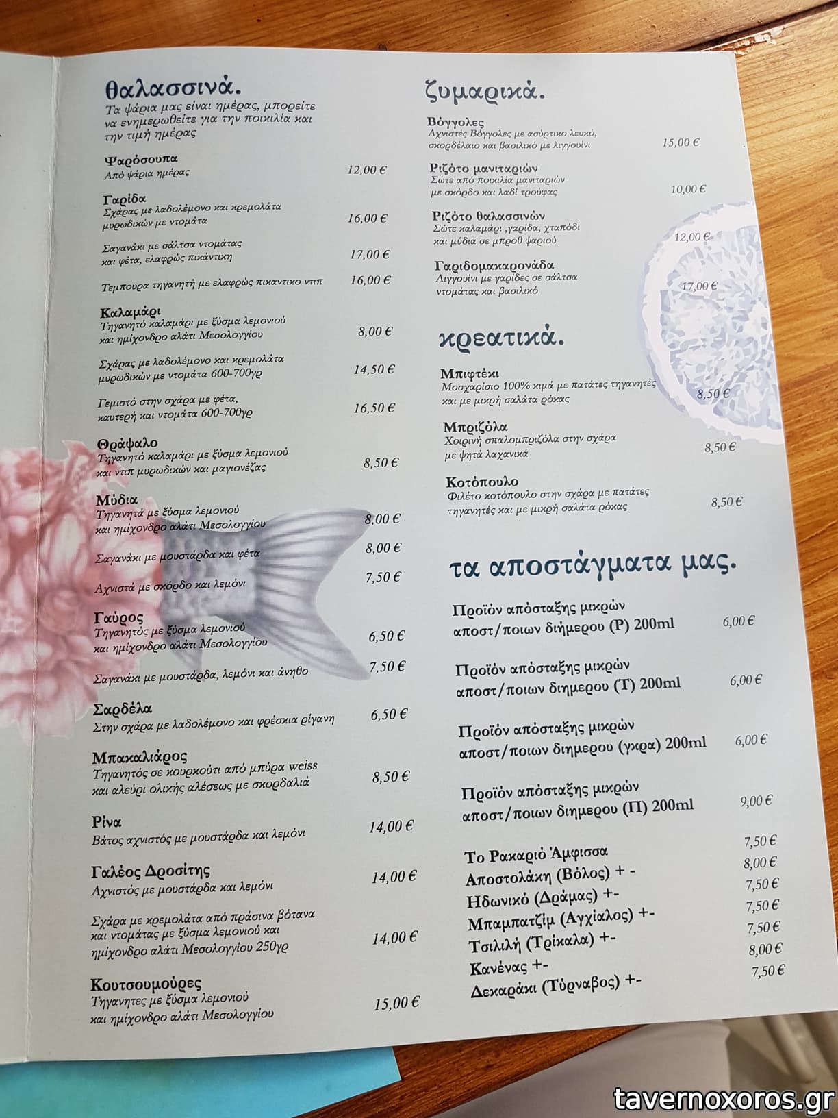 Καθίσαμε στον εξωτερικό χώρο του καταστήματος όπου υπάρχουν πλαστικά που κόβουν των αέρα. Πήραμε αρκετούς μεζέδες για 6 άτομα και μείναμε ευχαριστημένοι. Τα κλασικά, γαύρο, καλαμάρια, χόρτα, κολοκυθάκια, όλα τα καλά.