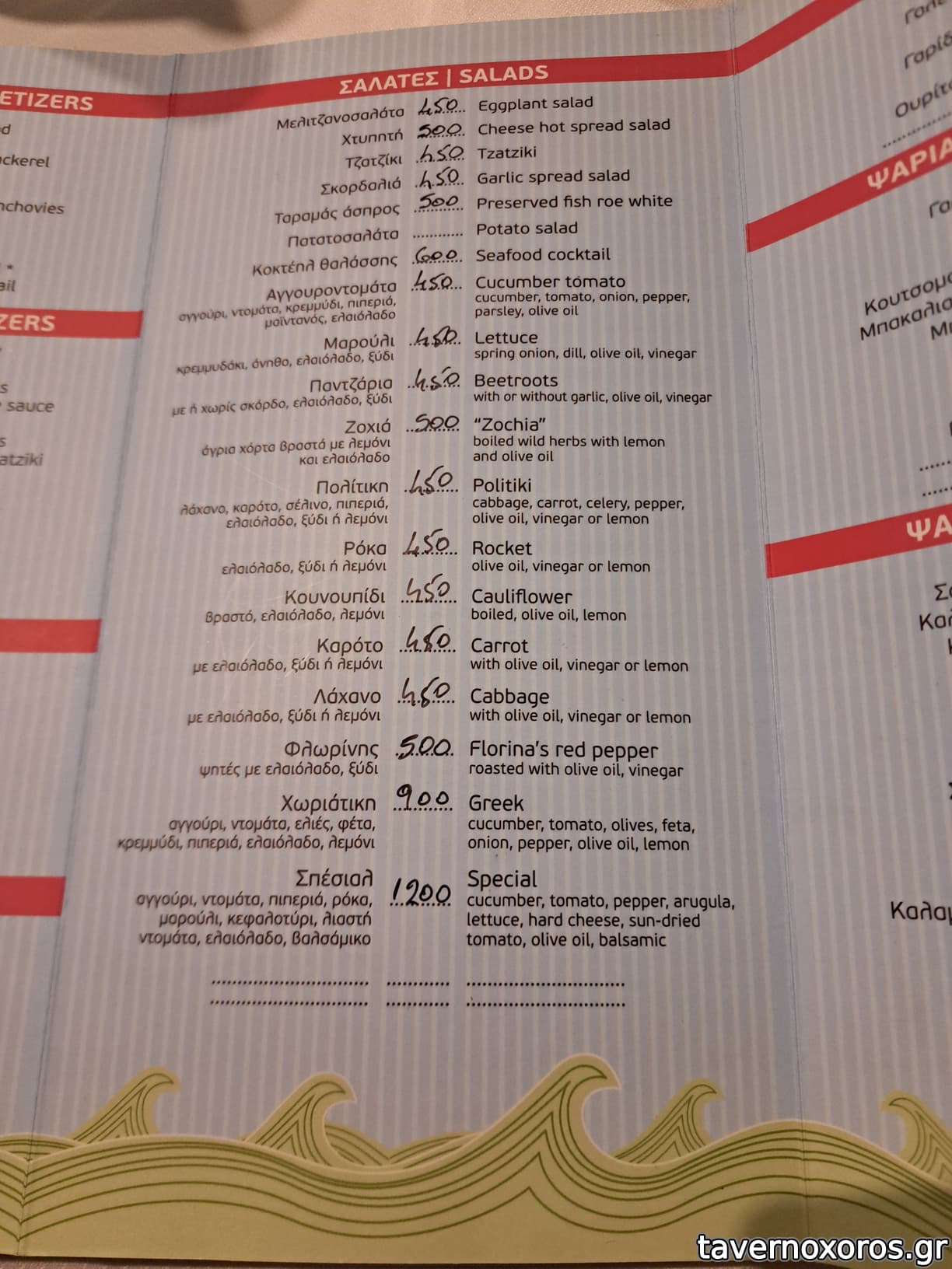 | Λέξεις κλειδιά | #χταπόδι, #μαρίδα, #μπακαλιάρος σκορδαλιά, #φασόλια γίγαντες, #ντολμαδάκια, #μανιτάρια, #σουπιά κρασάτη, #γαύρος, #σαρδέλα, #μύδια, #γαρίδες, #πεσκανδρίτσες, #γαύρος μαρινάτος, #φάβα, #κολοκυθάκια, #μυδοπίλαφο, #γαλέος, #μπακαλιαράκια, #χαλούμι, #μπιφτέκι, #κοτόπουλο, #χοιρινή, #ψαρονέφρι, #παϊδάκια |