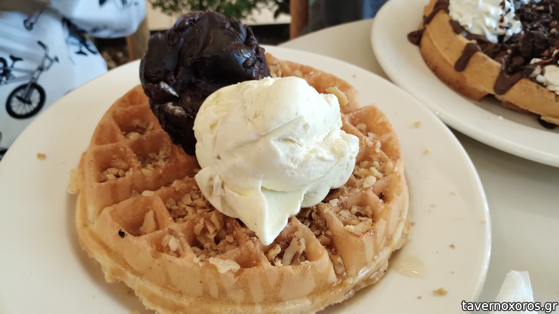 Προχθές ήθελα να φάω μετά από χρόνια μια βάφλα σπέσιαλ. Πήγα με την καλή μου λοιπόν και παραγγείλαμε 2 βάφλες με 2 μπάλες έκαστος, νουτέλα σάλτσα με φουντούκι για μένα και μπισκοτίνο αντίστοιχα. Το προσωπικό κοιμάται όρθιο σε βαθμό που το αποδέχεσαι οριακά. Με τα πολλά σκάνε μύτη 2 τέρατα. Για πρώτη φορά στη ζωή μου άφησα βάφλα στο πιάτο. Το ζάκχαρο να κτυπάει κόκκινα και η τερηδόνα να ετοιμάζεται να κάνει πάρτυ...Η δε τσέπη να δυσανασχετεί με το που ήρθε ο λογαριασμός. 15 ευρώ. Συμπέρασμα. Μία βάφλα για δύο άτομα, συμφέρει και το στομάχι και την τσέπη!! Α,ξέχασα να πω ότι τα καθίσματα είναι τα πιο άβολα που έχω καθίσει. Με το που κάθεσαι ακούγεται ένα πούφφφ λες και παρκάρει φορτηγό, γλυστράνε και δύσκολα βολεύεσαι γενικά. Καλύτερα να καθόμουν σε βράχο!!