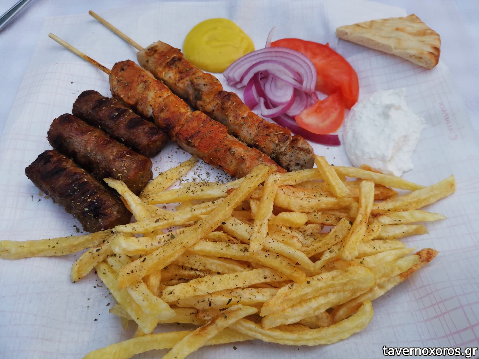 Δοκίμασα τεμάχια σουβλάκια(χωρίς λίπος που δεν είναι του γούστου μου) και σουτζουκάκια όπου τα δεύτερα ήταν πολύ καλά γευστικά.Πίτα αλάδωτη,πατάτες μόνο φρέσκες(το επισημαίνουν με ξεχωριστή ταμπέλα στην είσοδο του μαγαζιού)ενώ στα θετικά θα έβαζα και το κηπάκι τους που έχουν στην πίσω πλευρά όπου αποφεύγεις την φασαρία από τον κεντρικό δρόμο.