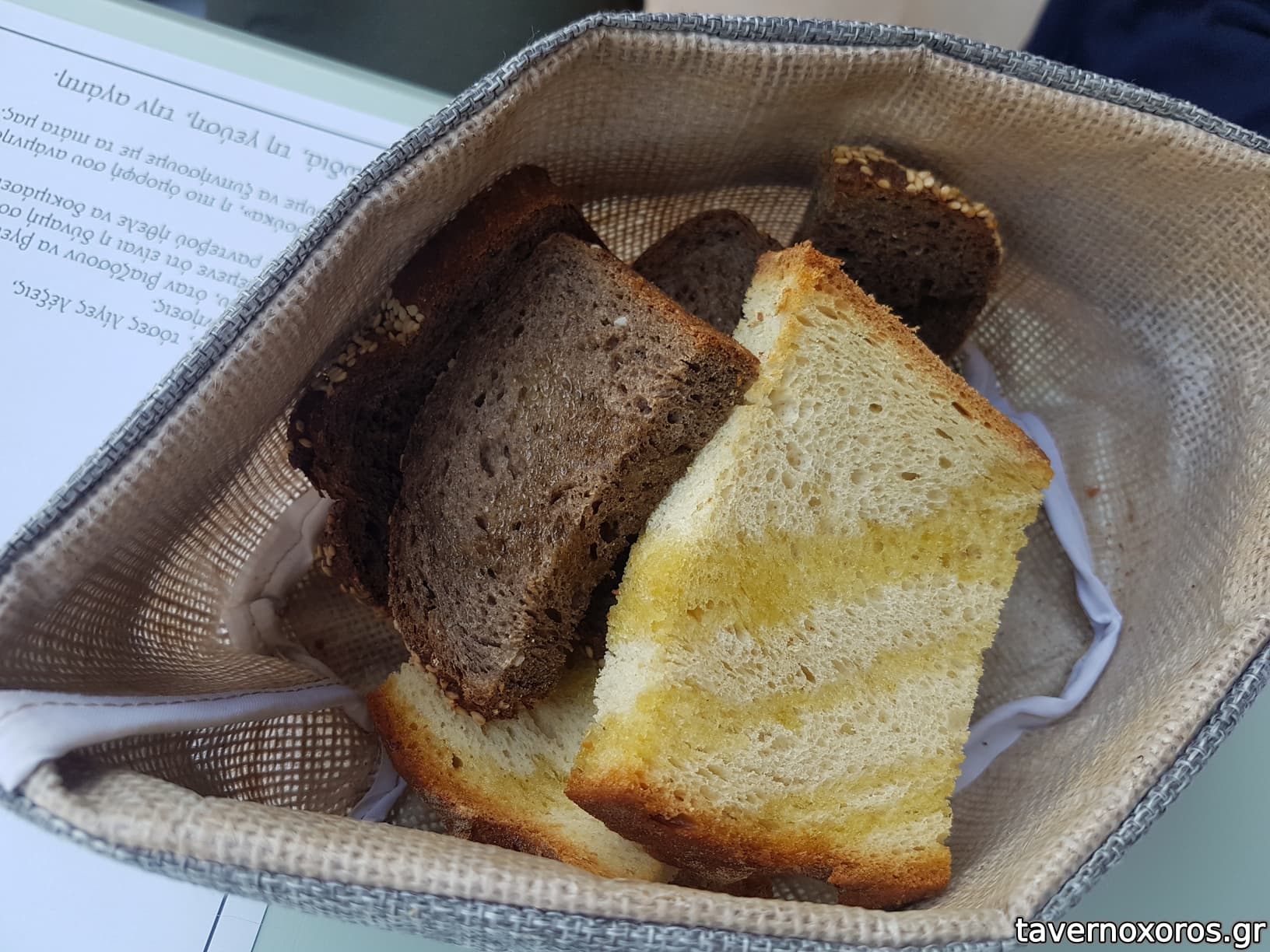 "Κοτόπιτα: χειροποίητο φύλλο, καραμελωμένα πράσα, Μετσοβόνε, ξινότυρο Γρεβενών, λάδι δυόσμου" (αδιάφορη, αρκετά στεγνή, και το συνοδευτικό ξινότυρο δεν βοηθούσε πολύ)