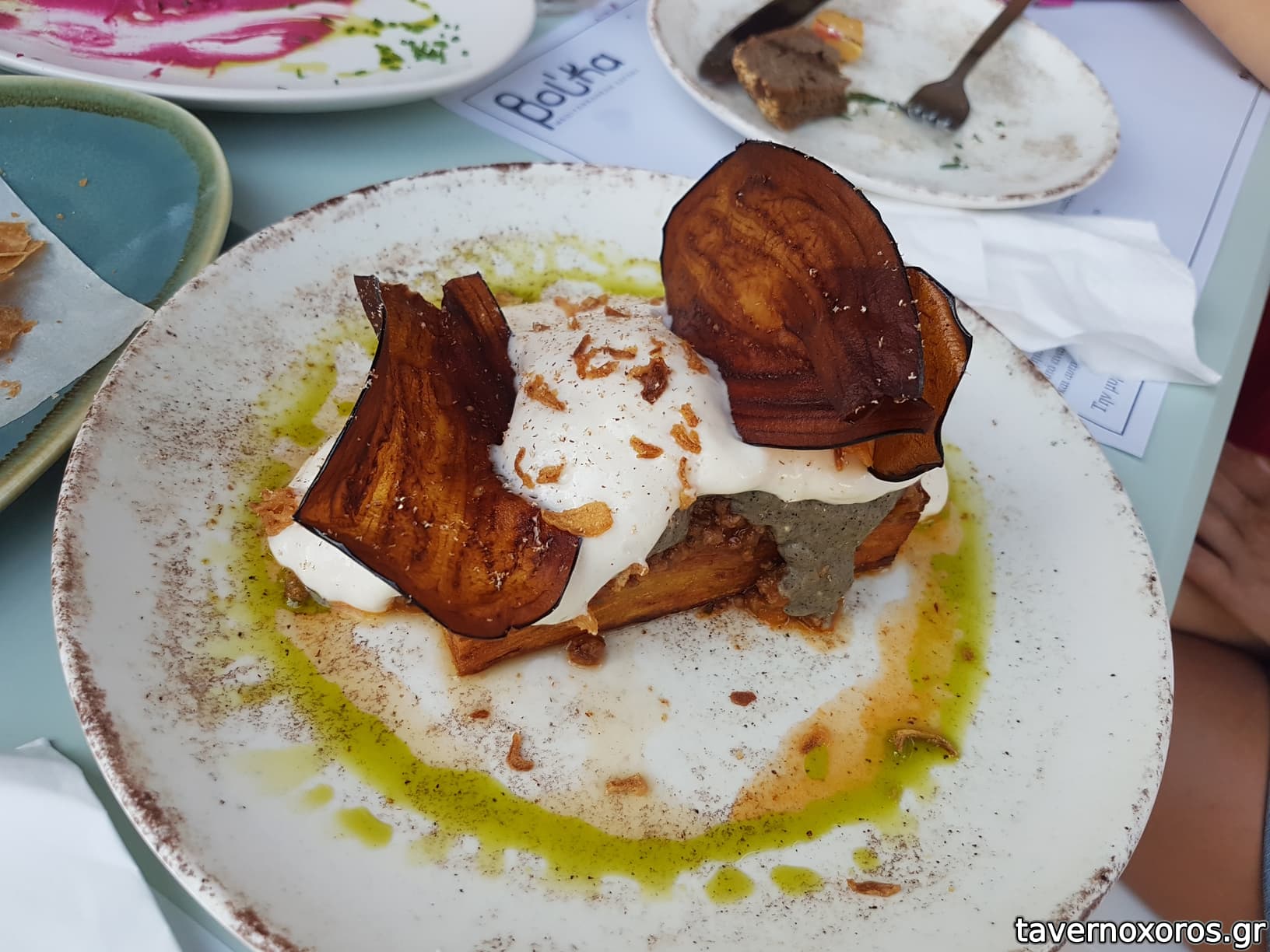 Πιάτο ημέρας: μουσακάς (αποδομημένος μουσακάς, καλός, αλλά όταν μάθαμε εκ των υστέρων στο λογαριασμό ότι κόστιζε 16€, έτσουξε)
