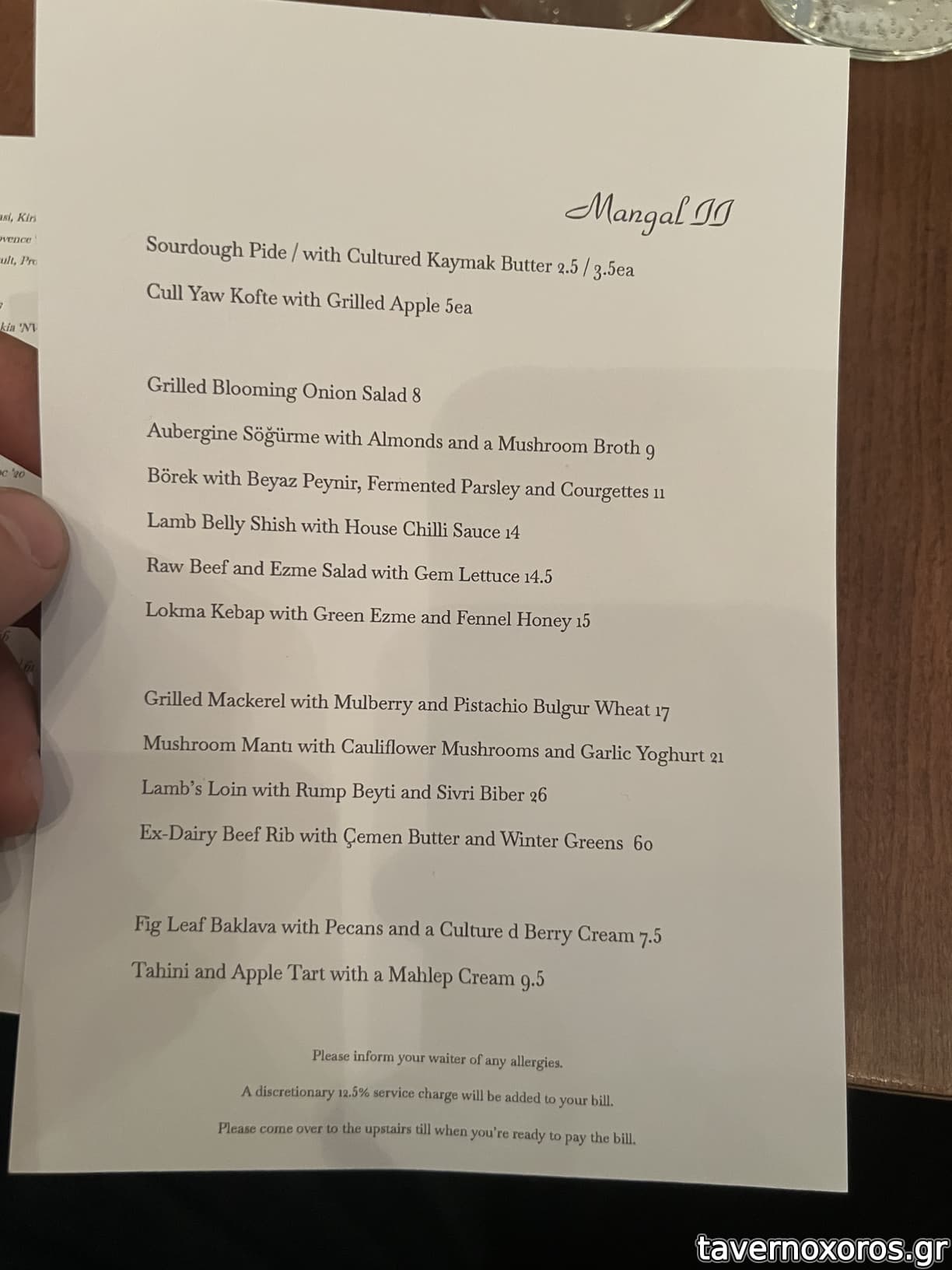 Το φαγητό ήταν σε γενικές γραμμές πολύ καλό, τούρκικη κουζίνα με Ευρωπαϊκές επιρροές και τεχνικές. Ό,
