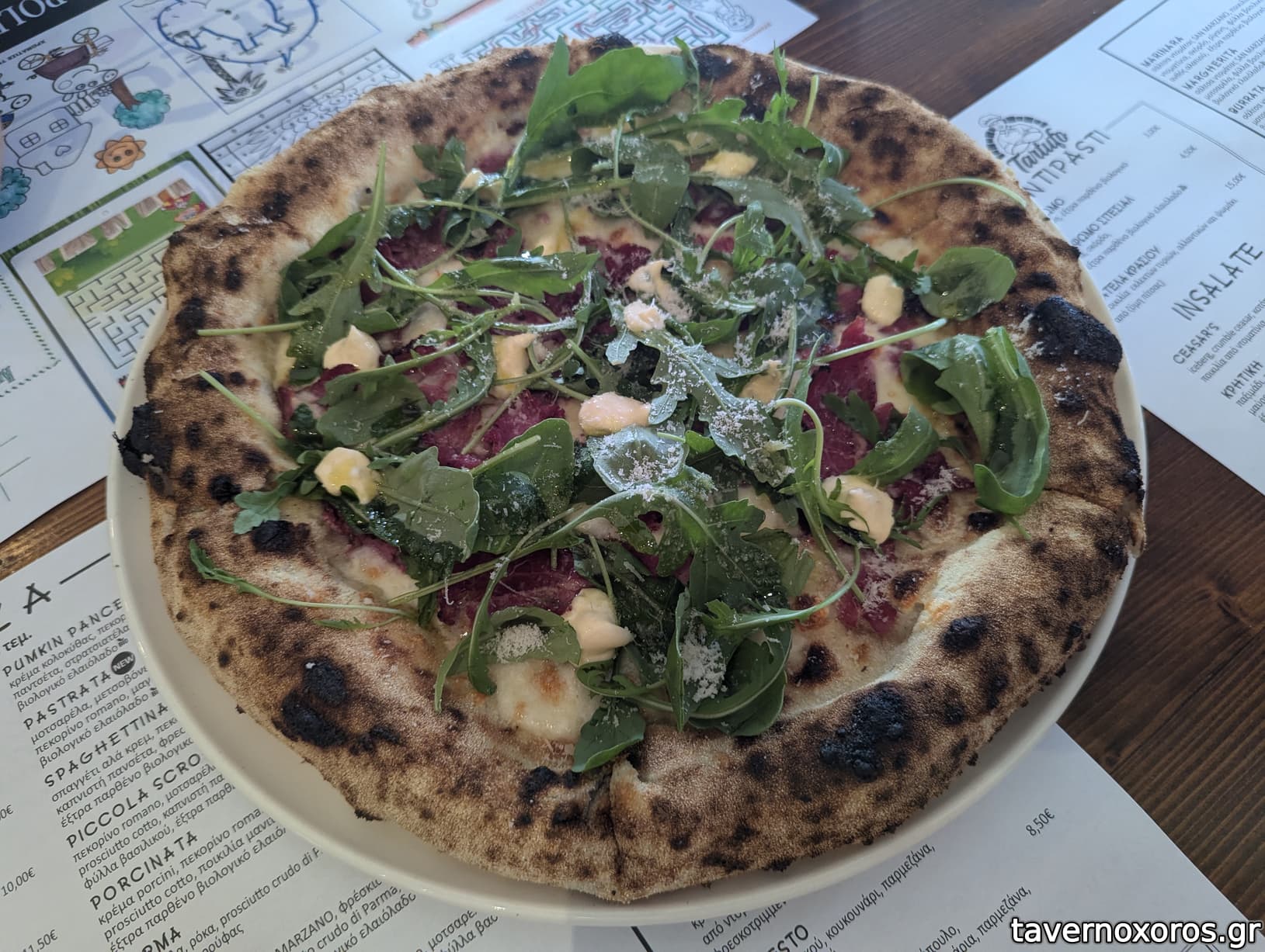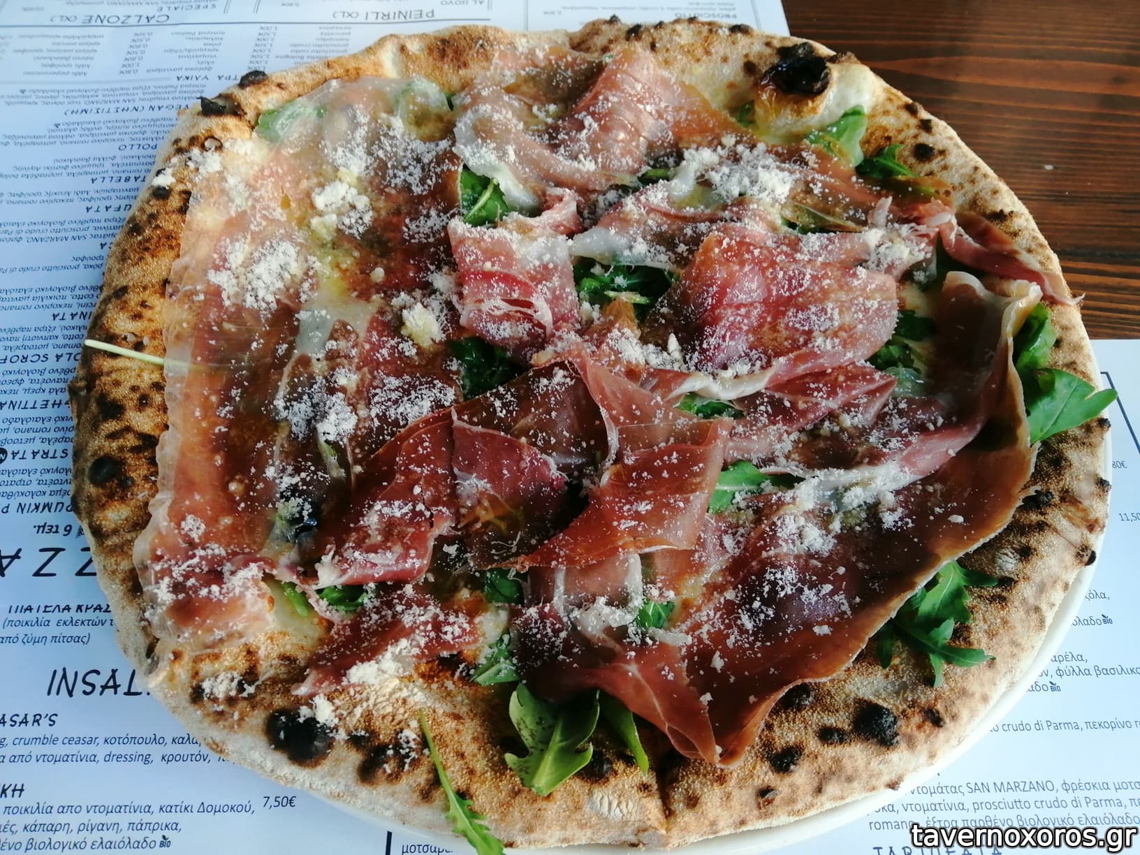 Pizza parma με ρόκα & προσούτο (12€, καλή αλλά όχι τοπ)