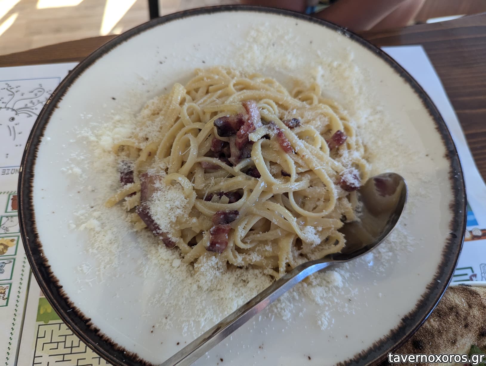 Carbonara (οκ, μας ρώτησαν με "σπαγγέτι ή πένες", ζητήσαμε με σπαγγέτι, ήρθαν με λιγκουίνι, χωρίς να ενημερώσουν)
