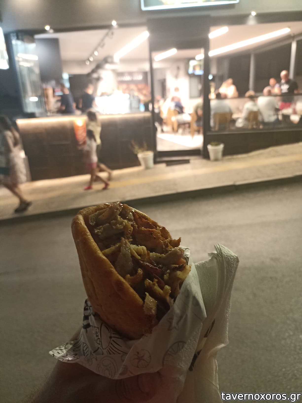 Η πίτα κάπως ιδιαίτερη (τηγανίζεται, ενώ είναι και κατακόκκινη λόγω της γλυκιάς πάπρικας), που το κάνει να ξεχωρίζει. Στα 5€ (αλοιφή extra 0,2 ευρώ).