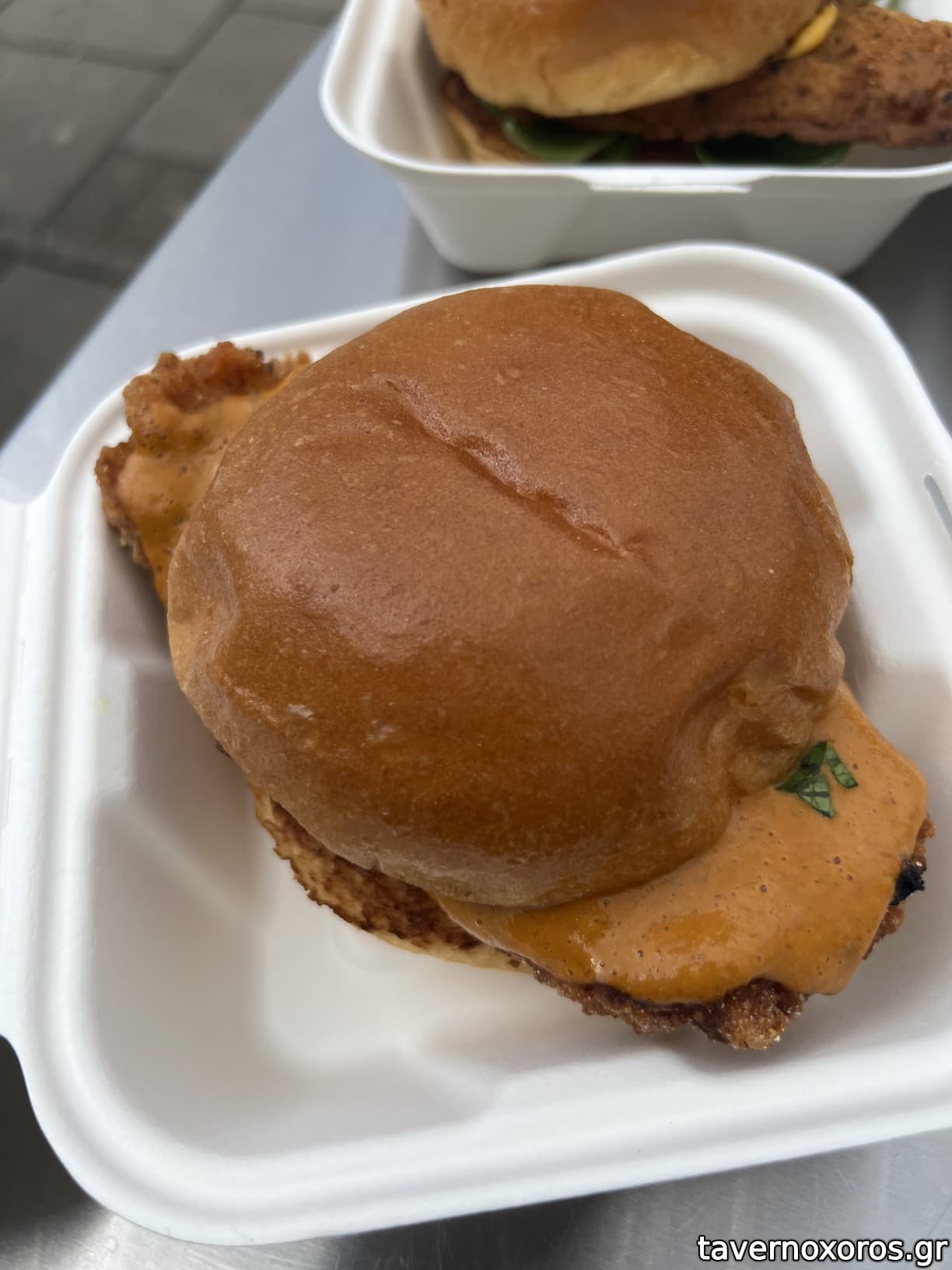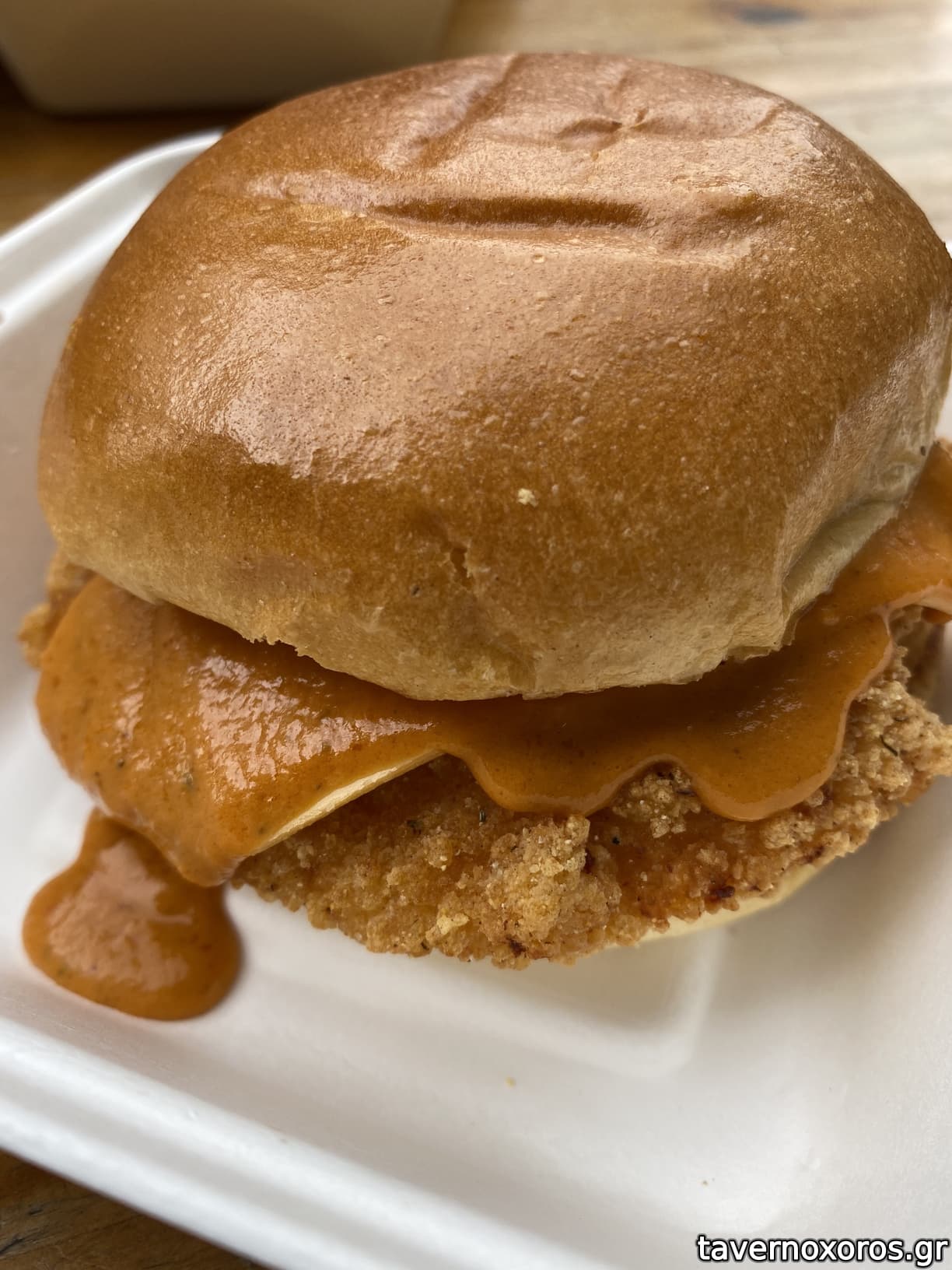 Chicken burger με σάλτσα πιπεριού (πολύ καλό και καυτερό)
