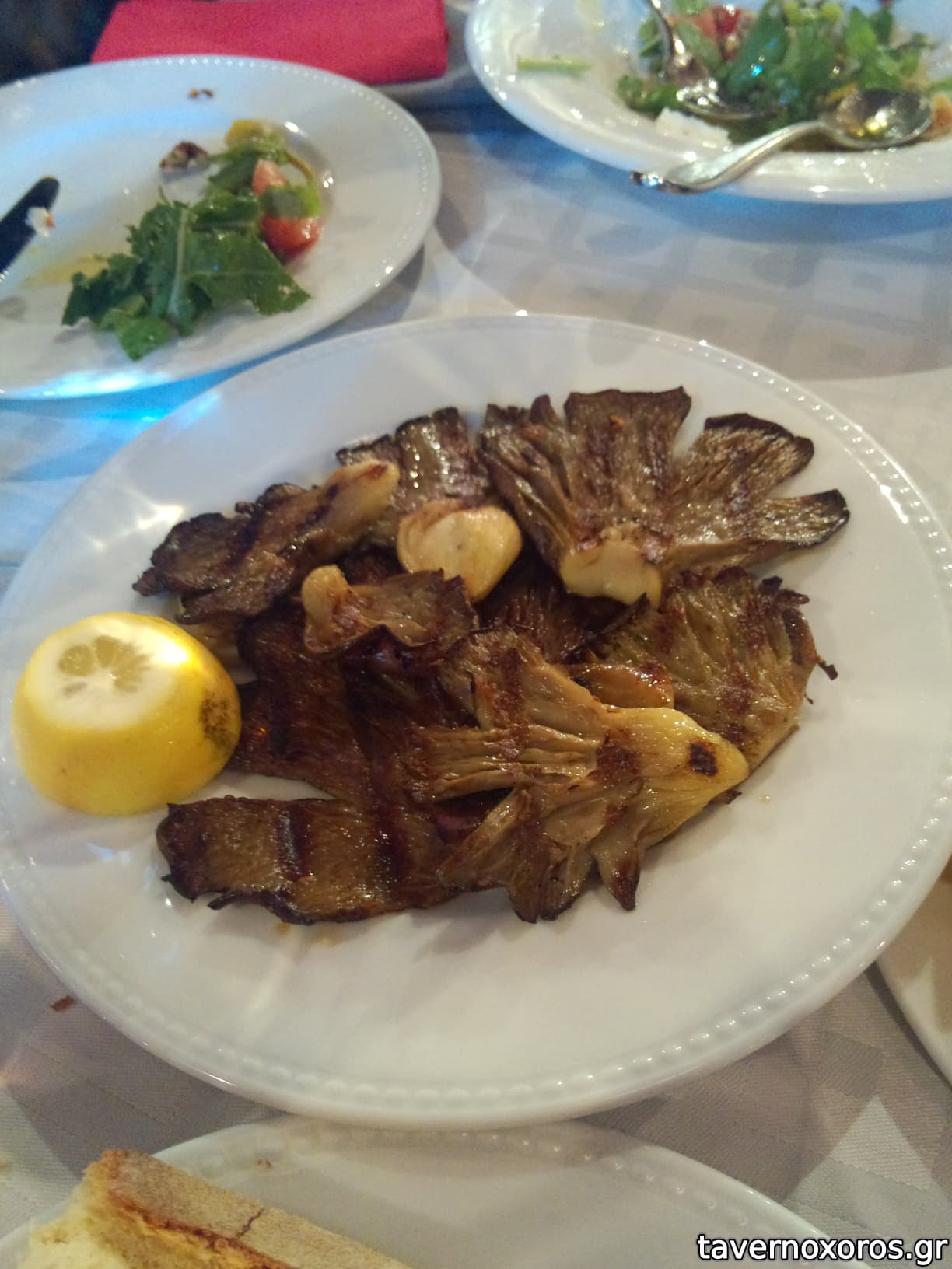 Στο φαγητό τώρα. Δοκιμάστηκαν σαλάτα παντζάρια, μελιτζάνα ψητή και μανιτάρια ψητά, όλα νόστιμα. Από κυρίως, εξοχικό και αρνίσια παϊδάκια και δεν απογοήτευσαν καθόλου αν και ήταν κάπως αλμυρά. Κρασί χύμα καλό και κερασμένο γλυκό στο τέλος. Τιμές δε θυμάμαι ακριβώς αλλά πρέπει να ήταν κοντά στα 50€. Απόδειξη κανονικά