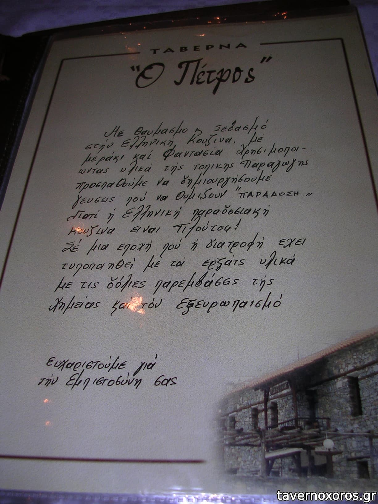 Ο πρόλογος στον κατάλογο (σ.σ. μου φάνηκε αστείο να μιλάει για "εξευρωπαϊσμό" της διατροφής, όταν στο μενού έχει ροκφόρ και μανιτάρια α λα κρεμ!)