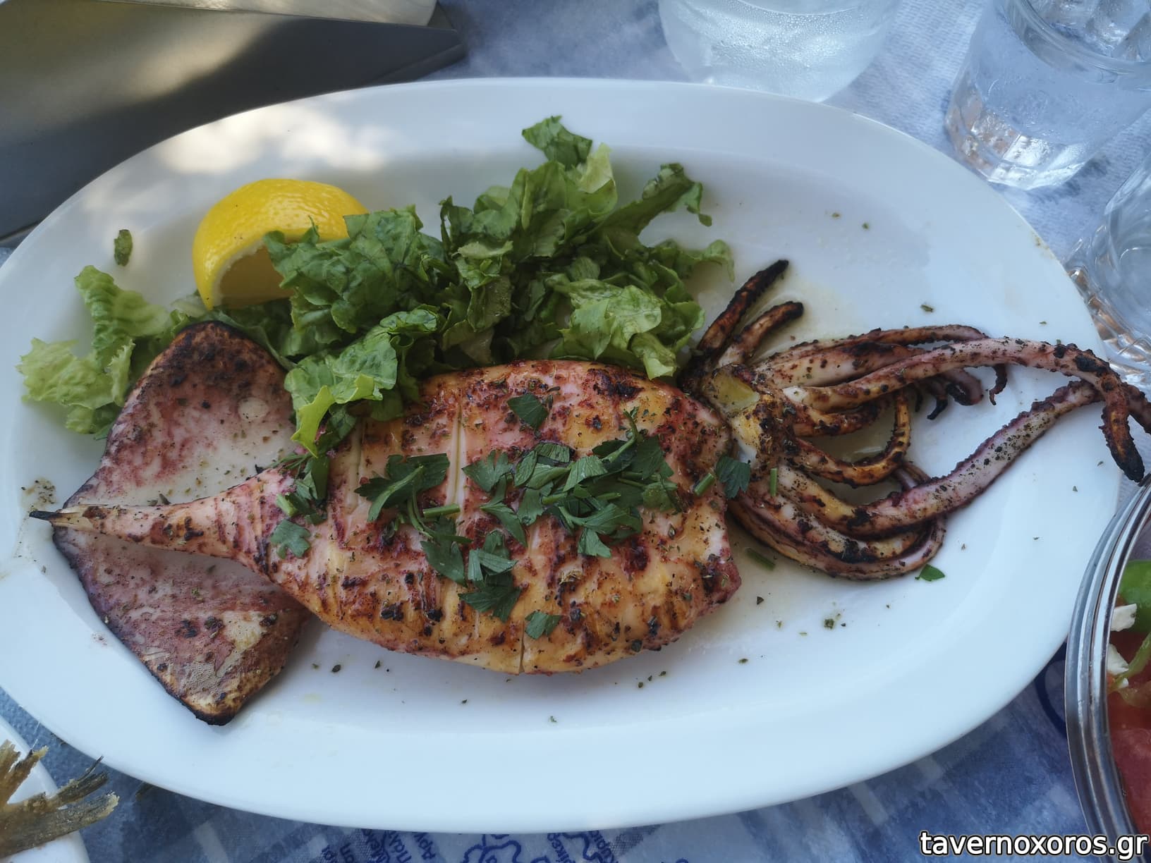 Δυστυχώς λόγω ώρας (Κυριακή απόγευμα) είχαν τελειώσει τα μεγάλα ψάρια, όμως ύστερα από λίγο μας ενημέρωσε ότι μόλις του είχαν πάρει ξιφία και πήραμε ένα κομμάτι. Παρότι δεν είναι από τα αγαπημένα μου, ήταν μαστόρικα ψημένο, ζουμερό και νόστιμο.