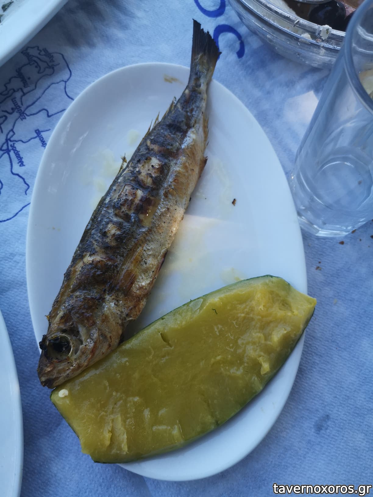 Ψάρι (δε θυμάμαι, κάτι σε σκουμπρί μου κάνει) και βέλι (τοπικό κολοκύθι)