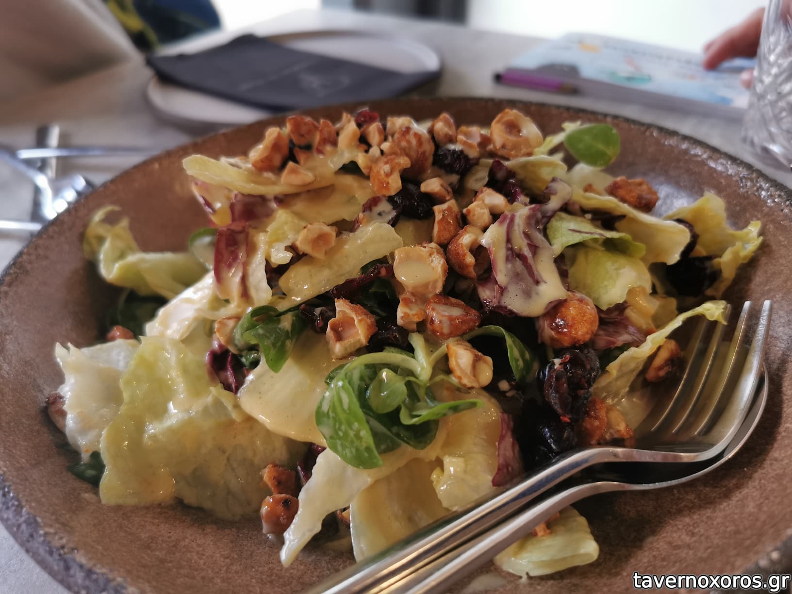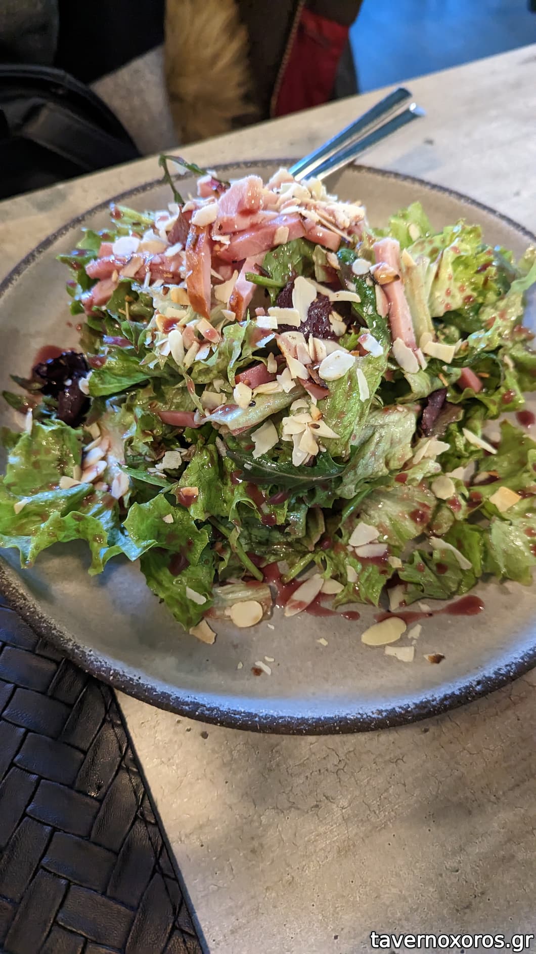 Σαλάτα πράσινη με καπνιστό ψαρονέφρι, φιλέ αμύγδαλο (οκ)