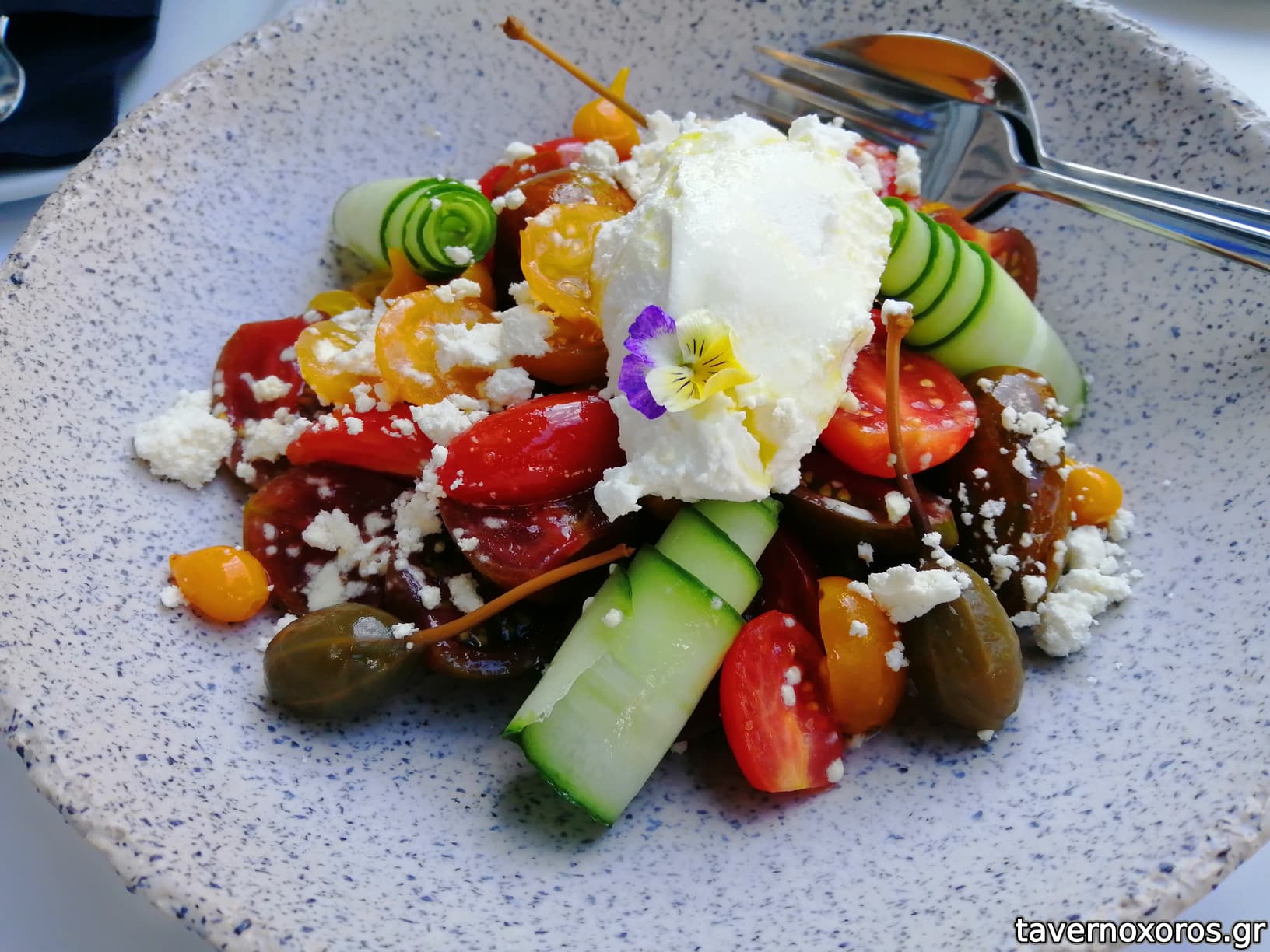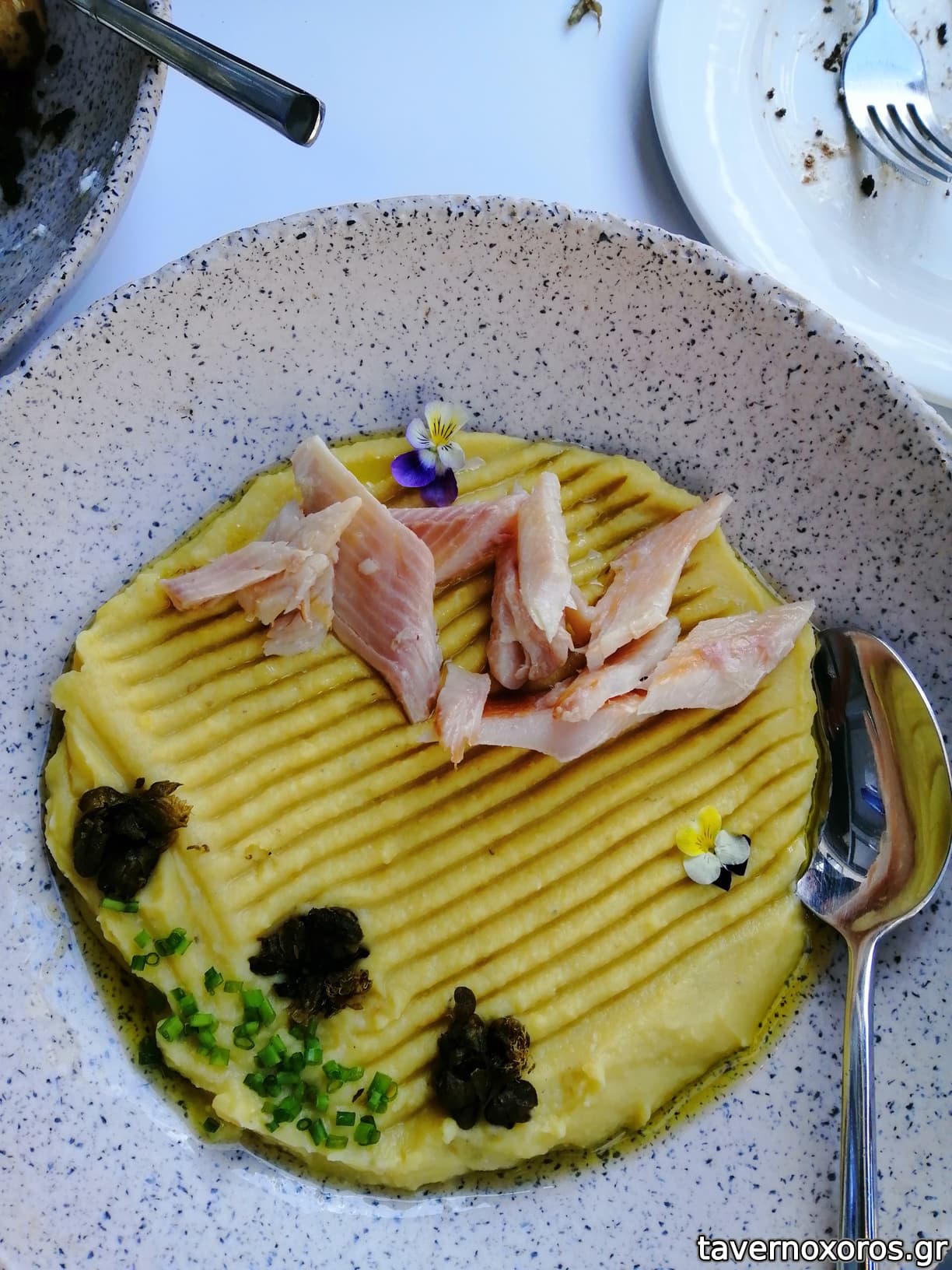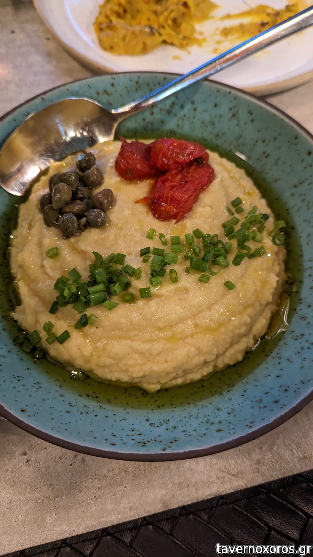 Φάβα με κάπαρη, ελαιόλαδο και ψητά ντοματίνια (καλό)