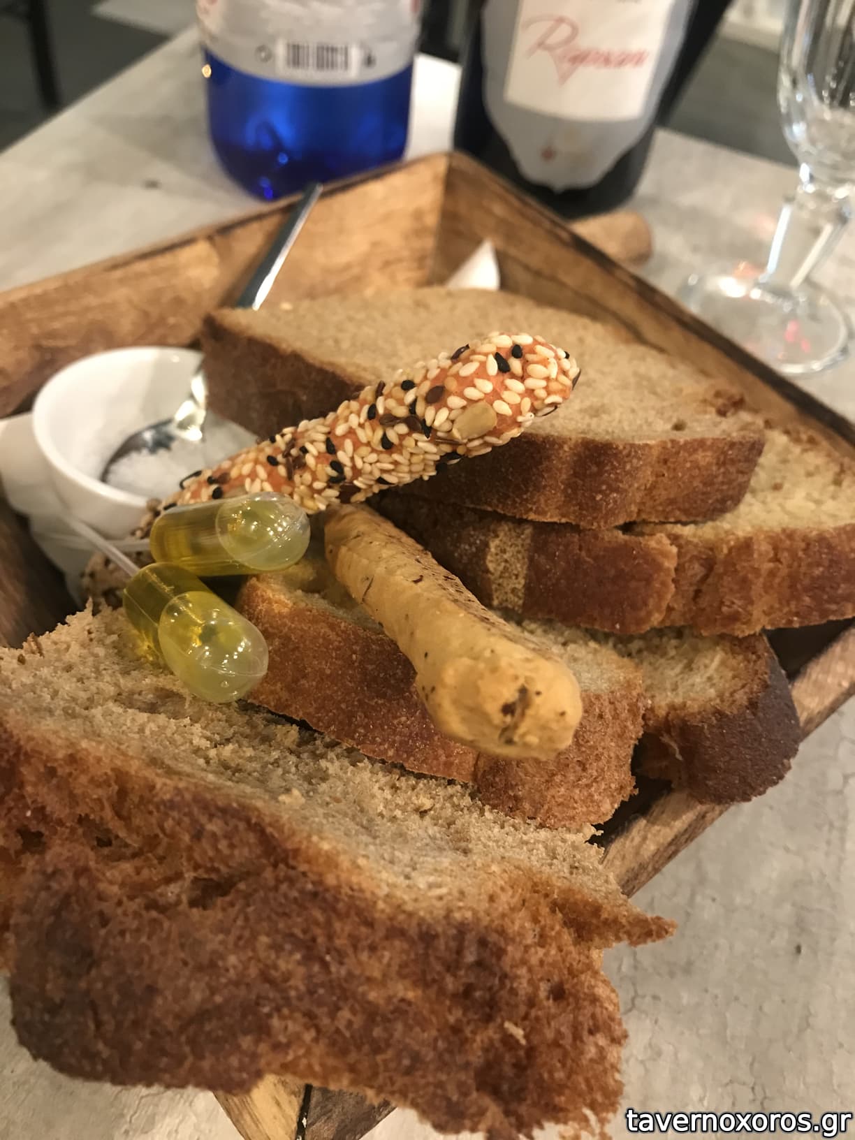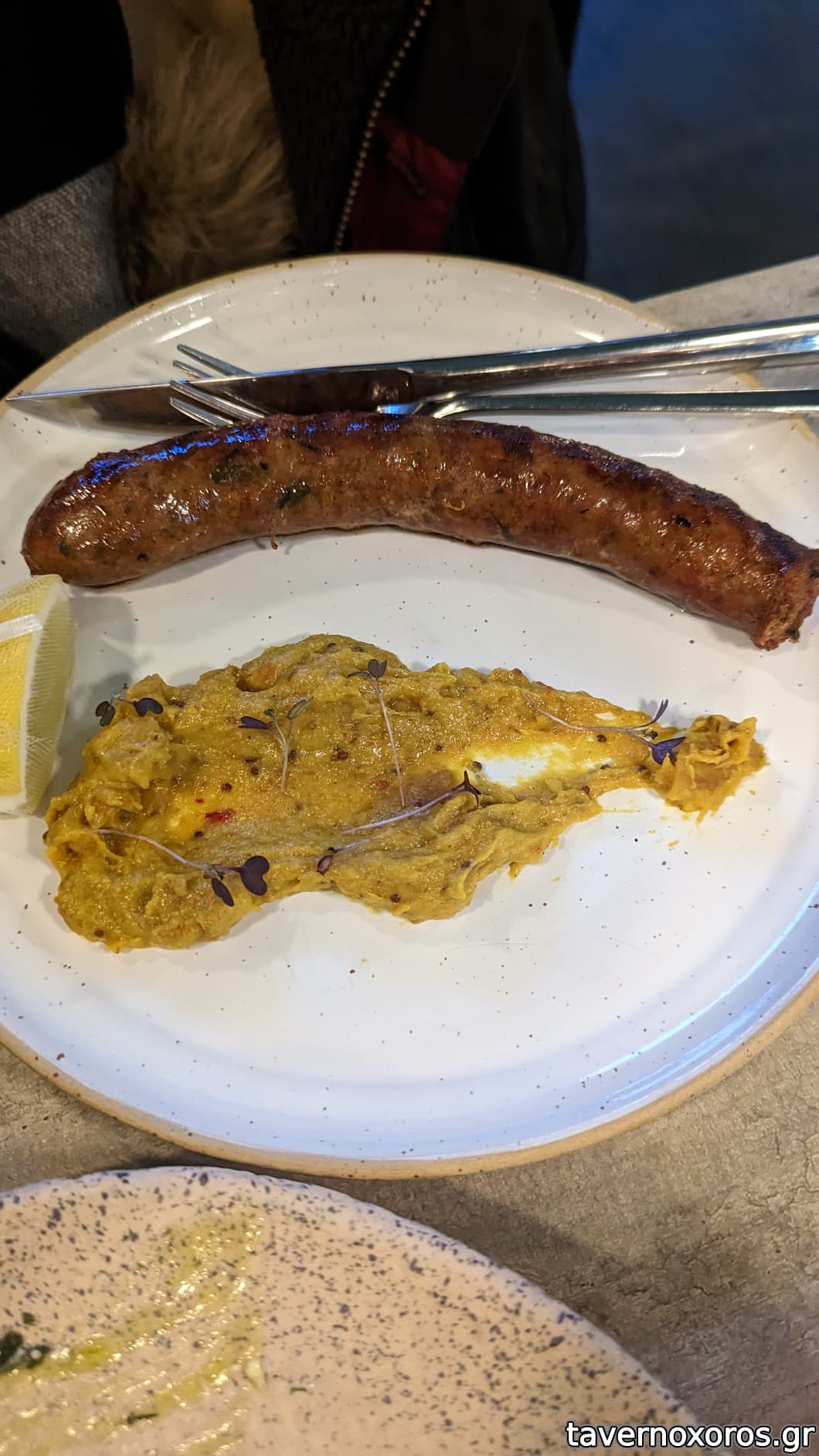 Λουκάνικο "χειροποίητο χωριάτικο" με μουστάρδα σύκο (το λουκάνικο θεϊκό, η μουστάρδα δεν μας άρεσε καθόλου)