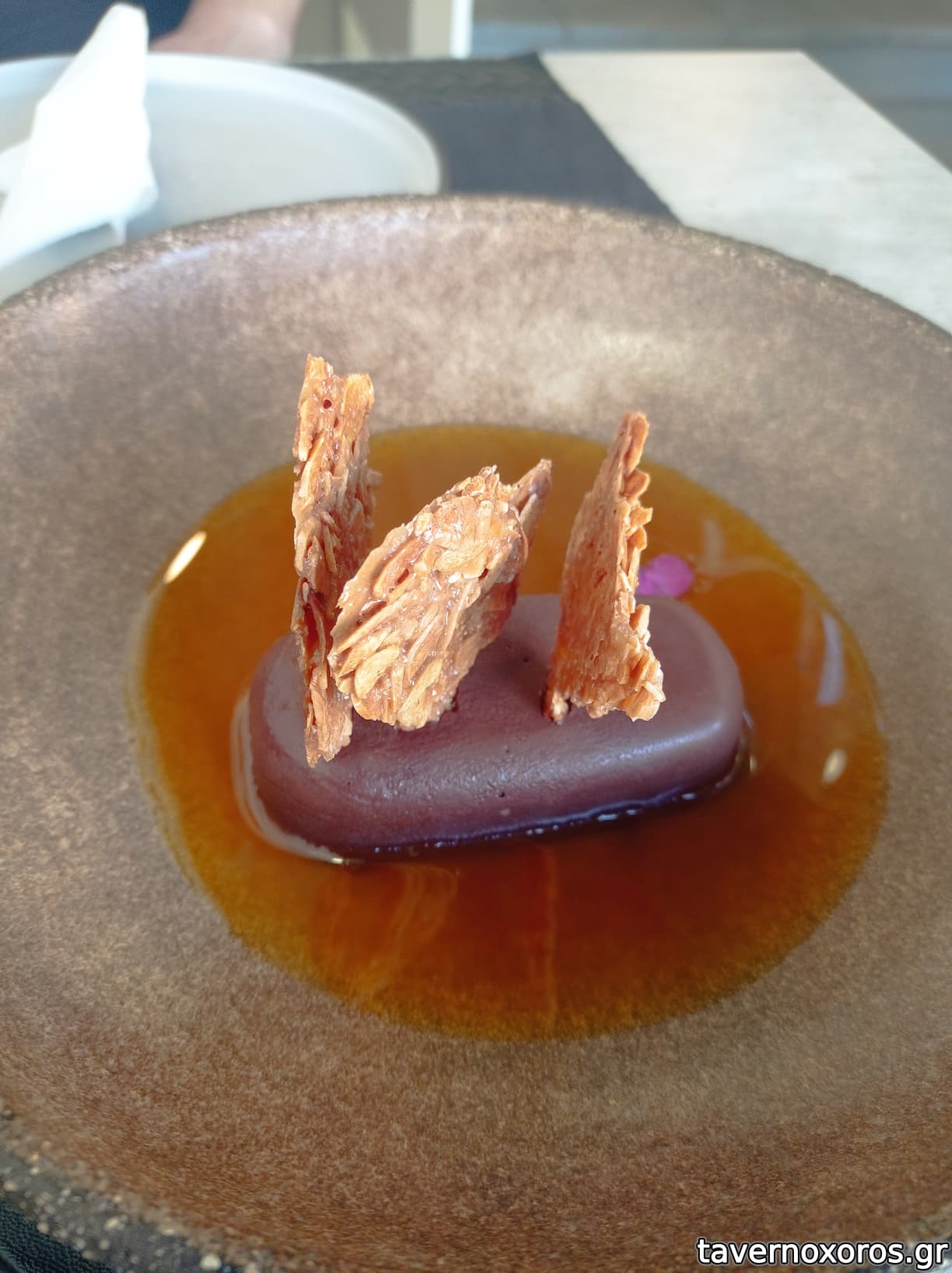 Μαύρη σοκολάτα, ελαιόλαδο, σάλτσα από μάνγκο και χειροποίητη φλωρεντίνα (πολύ καλό)