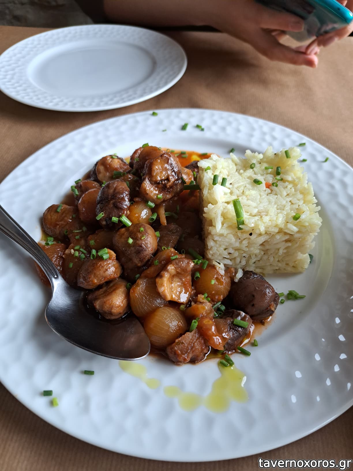 - Κάστανα στιφάδο & Ρύζι Μπαζμάτι (πολύ καλό)