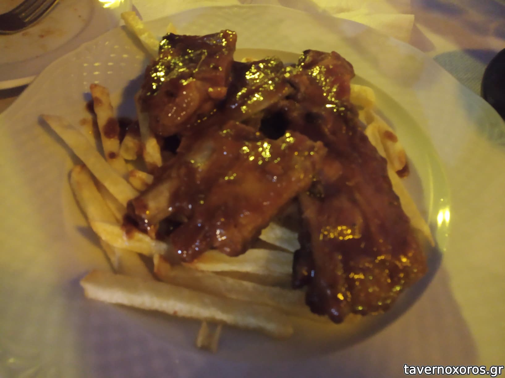 Στη διάρκεια της μέρας συζητήσαμε με την Κατερίνα για το αν έχει μαγειρευτά, και μας ρώτησε τι θέλαμε! Με την κουβέντα καταλήξαμε και έκανε Ρεβύθια φούρνου, που ήταν πολύ οκ. Επίσης είχε Χοιρινά Ribs (περίεργο που τα είχε, "