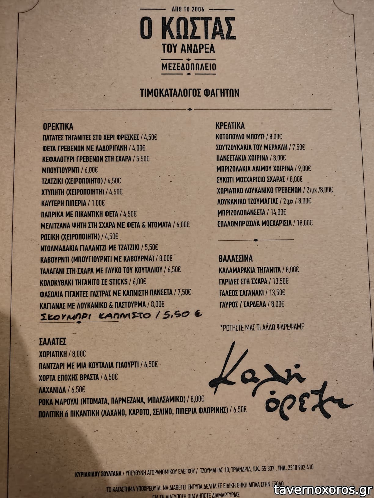 Για ολα αυτα 27€ ΜΕ αποδειξη προς τιμην τους. Υπερλαϊκες τιμες που ξεκιναν απο 2€ για πολλα μεζεδακια ή σαλατες.