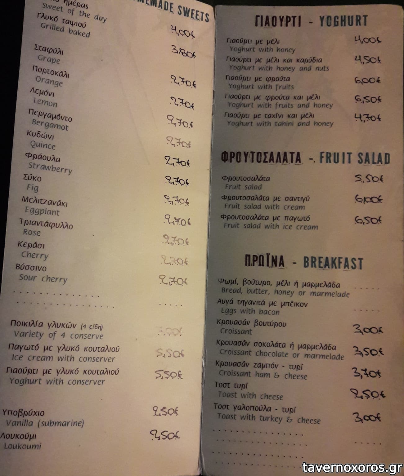 | Ωράριο | 18:00-00:30. Μόνο καλοκαίρι. |