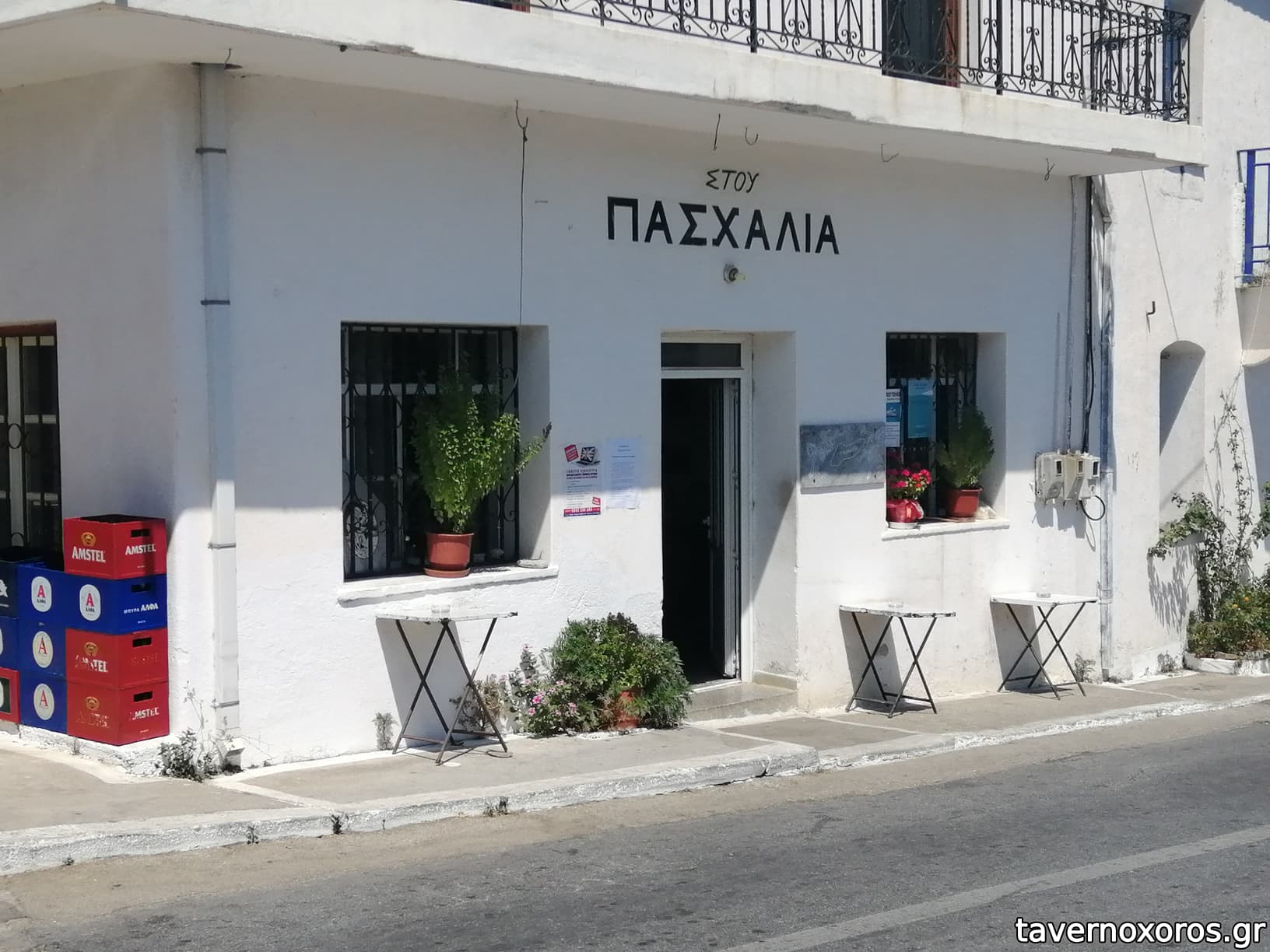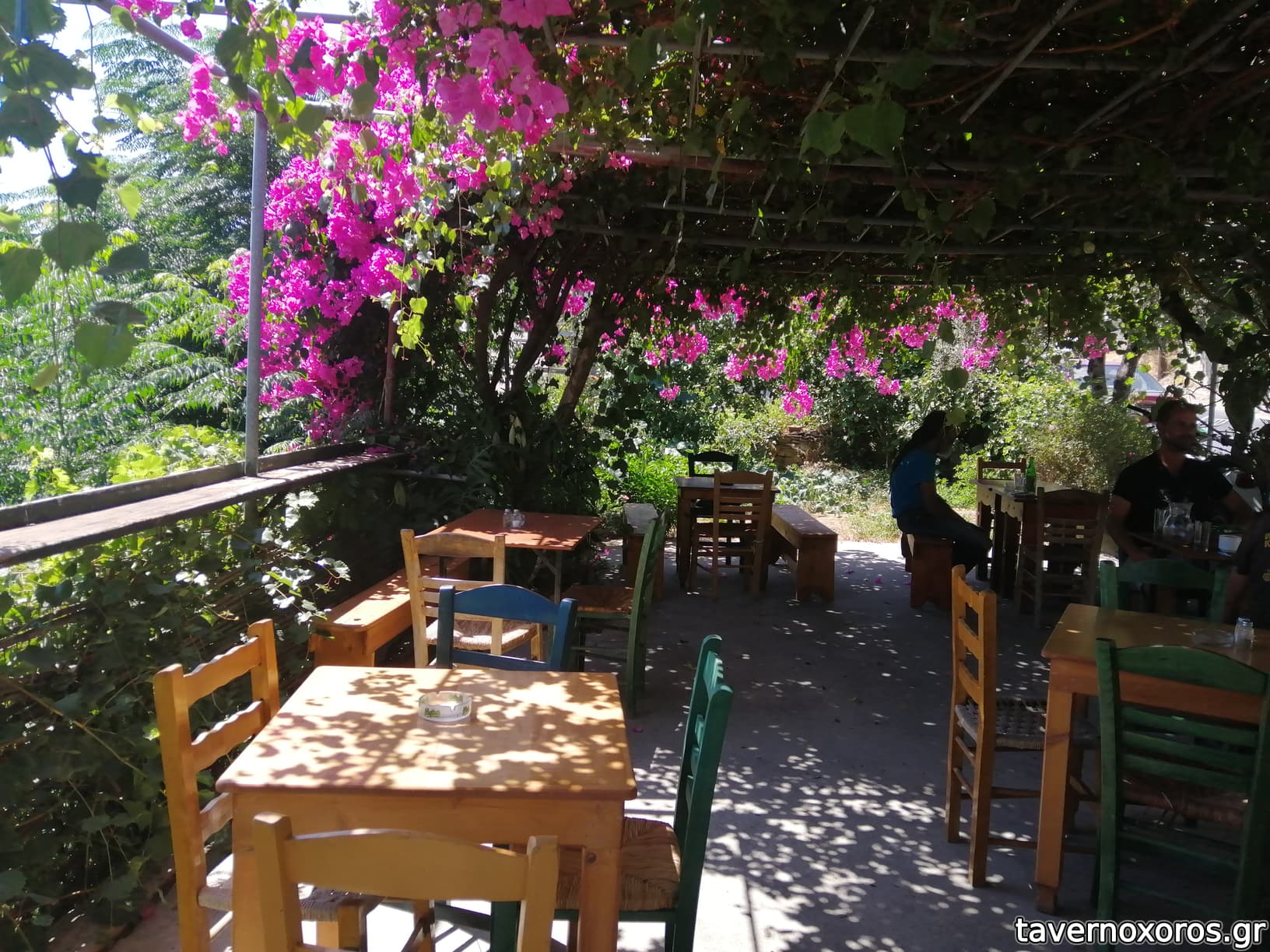 Καφενε-μεζεδο-ταβερνείο επάνω στο δρόμο με δυνατά τραπεζάκια κάτω από καταπράσινες και αρωματικές βουκαμβίλιες, μεθυστικό άρωμα το βράδυ, κρίμα η βαβούρα του δρόμου. Λαϊκός ιδιοκτήτης, λαϊκό και το μαγαζί με ωραίες γωνιές για χάζι και φωτογραφίες, δουλεύει σαν ψησταριά μεζεδοπωλείο και βγάζει και ανάλογα τα γούστα και κάποια μαγειρευτά φαγητά. Το φαγί ήταν καλό, όχι όμως τοπ, λίγη σημασία όμως έχει, εδώ πάει κανείς για το κλίμα, τους ανθρώπους και την παρέα