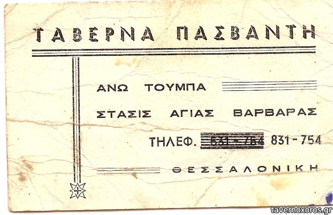 Κάρτα του μαγαζιού [προσφορά της κόρης του Παναγιώτη Πασβάντη]