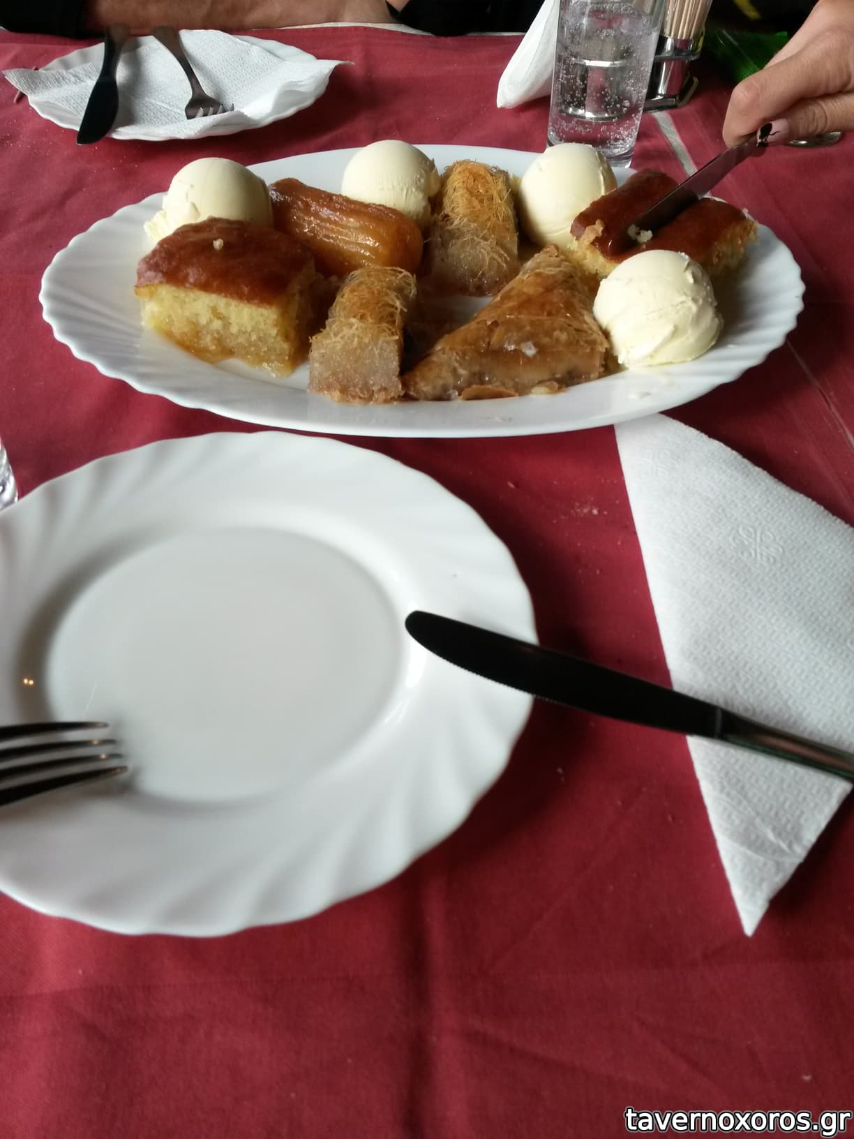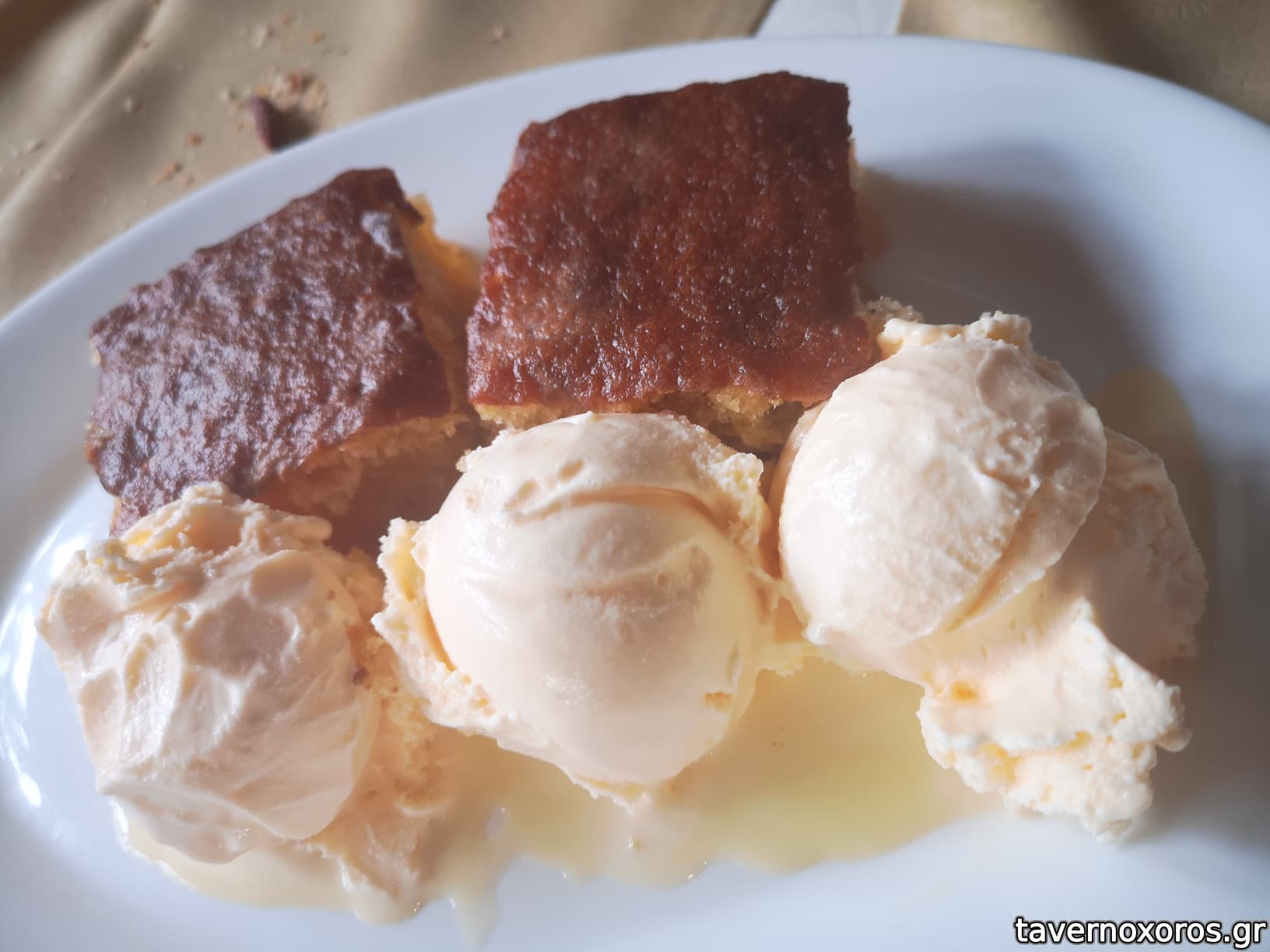 - Δύο μερίδες ρεβανί με παγωτό