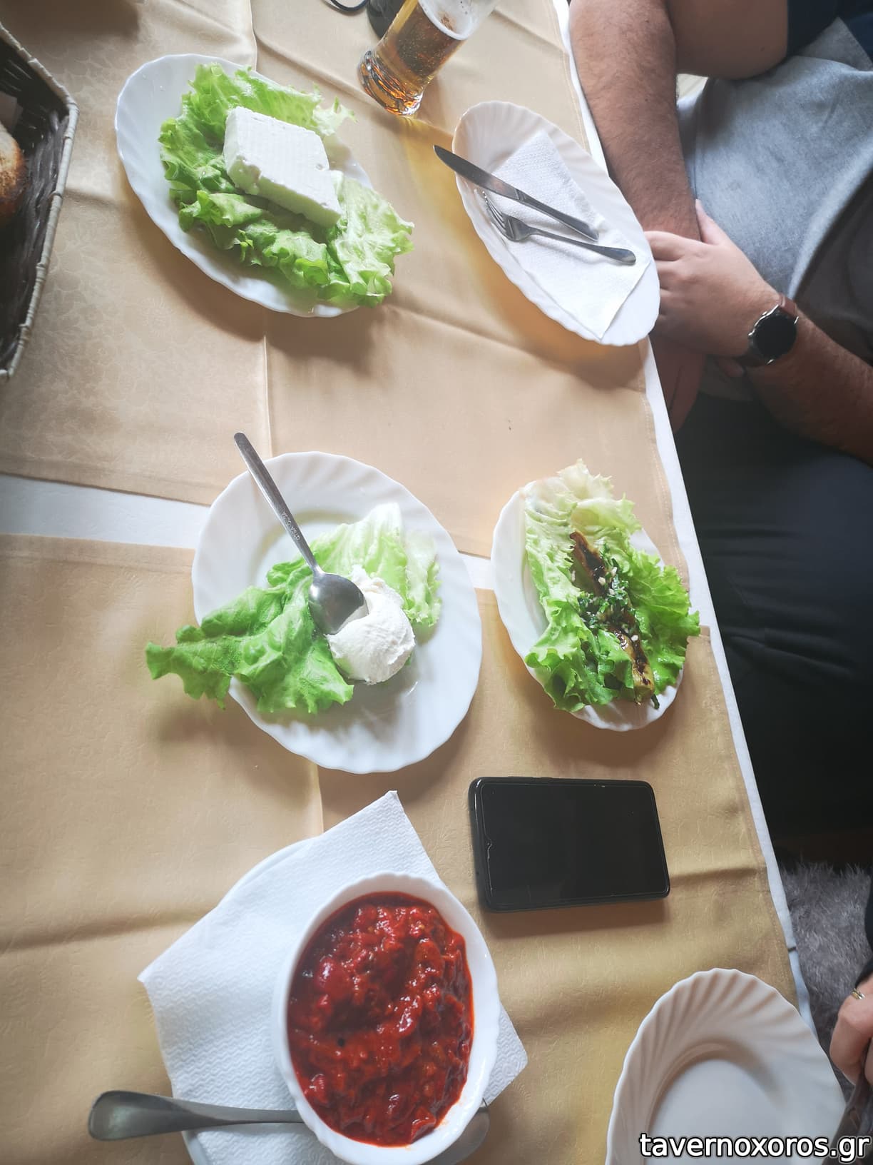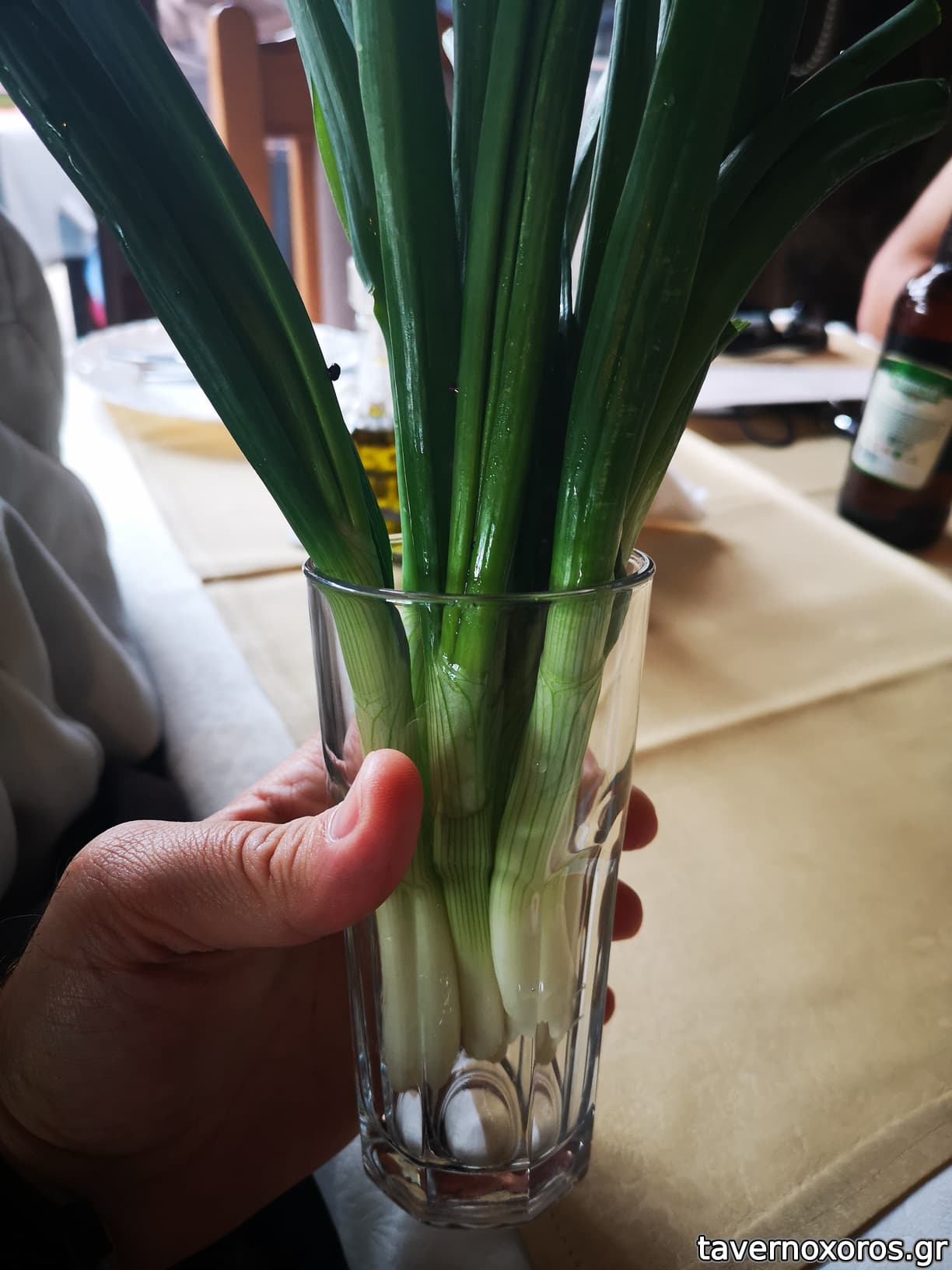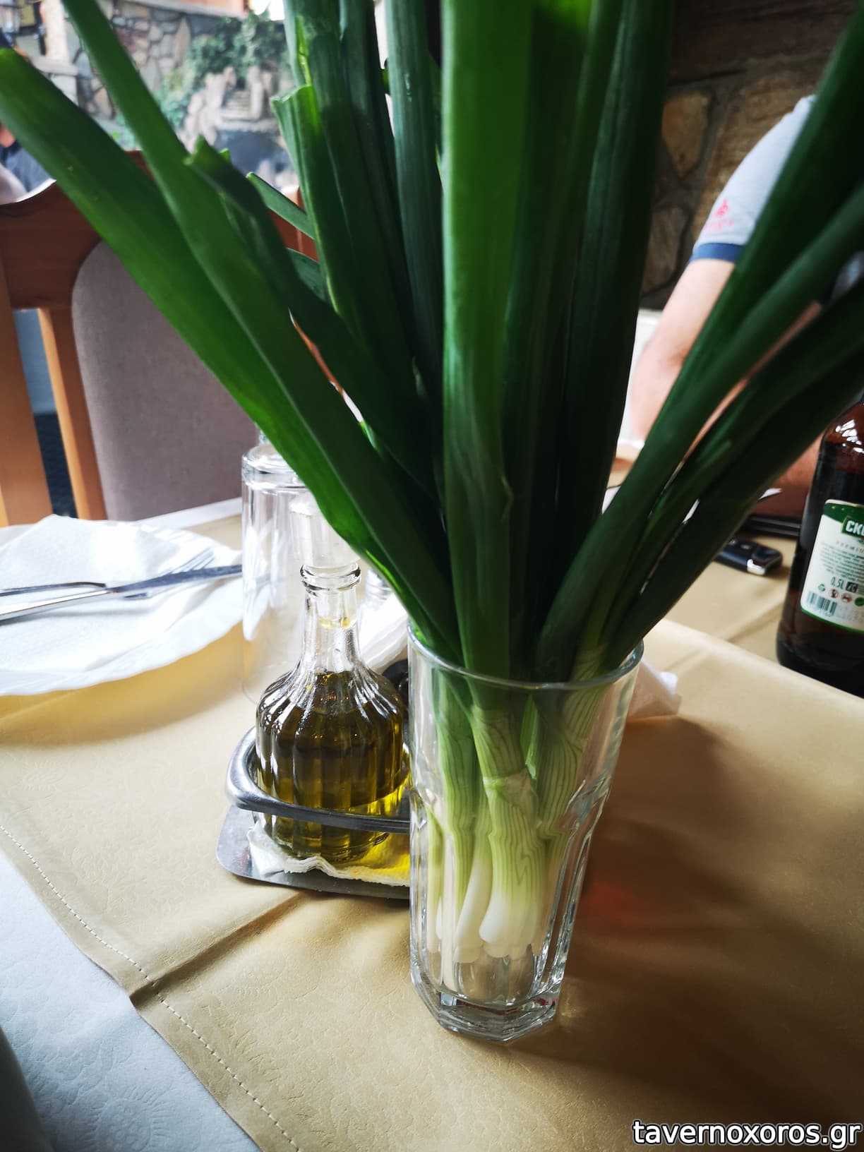 Bonus track: Στο τραπεζι υπηρχε βαζακι/ποτηρακι, με φρεσκα κρεμμυδακια μεσα!