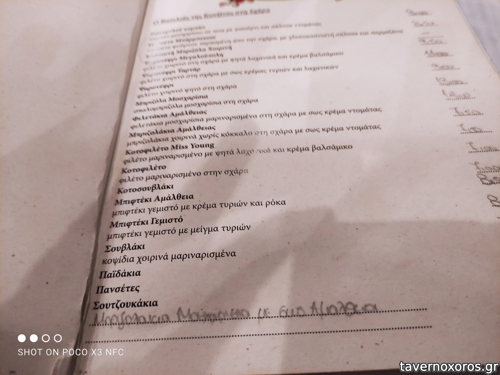 | Λέξεις κλειδιά | #σπεσιαλιτέ κότσι, #αυλή, #σουβλάκια, #σουτζουκάκια, #μπιφτεκάκια, #παϊδάκια, #κοτόπουλο, #μπιφτέκι, #λουκάνικο, #πανσέτα, #χοιρινή, #μοσχαρίσια μπριζόλα, #σνίτσελ, #κότσι, #μπιφτέκι γεμιστό, #αρνάκι στο φούρνο, #τζιγεροσαρμάς, #χουνκιάρ μπεγεντί, #σουτζουκάκια σμυρνέικα, #τηγανιά, #ψαρονέφρι, #καβουρμάς, #ντολμαδάκια, #γαλέος, #μύδια, #αστακομακαρονάδα, #γαρίδες, #θράψαλα, #χταπόδι, #γαύρος, #σαρδέλα, #μυδοπίλαφο, #μελιτζάνα τηγανητή, #κολοκυθάκια, #πιπεριές, #μανιτάρια, #χαλούμι, #κολοκυθοκεφτέδες |