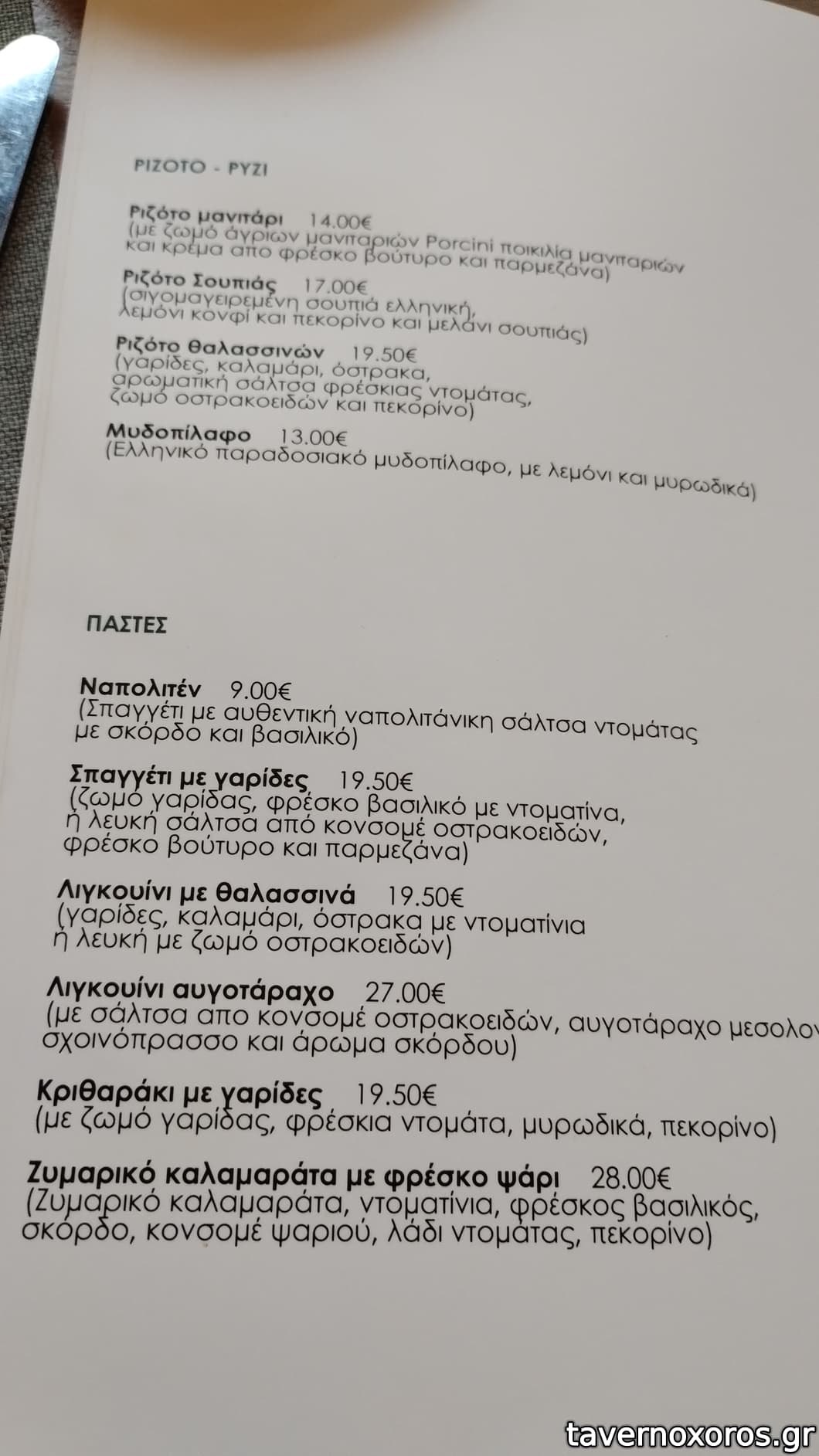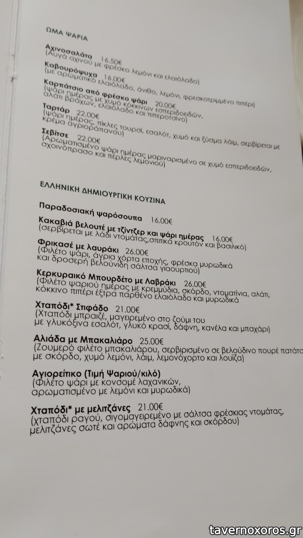 | Λέξεις κλειδιά | #ψαρόσουπα, #αχινοσαλάτα, #καβουροσαλάτα, #χταπόδι στιφάδο, #μπακαλιάρος σκορδαλιά, #μυδοπίλαφο, #σαρδέλα, #γαύρος, #σουπιές, #χταπόδι, #όστρακα, #χτένια, #μύδια, #χταποδοκεφτέδες, #κολοκυθάκια, #πιπεριές, #ντοματοκεφτέδες, #κολοκυθοκεφτέδες, #μανιτάρια, #ντάκος, #παστουρμαδόπιτα, #φάβα, #κεφτεδάκια, #κολοκυθοανθοί, #χοιρινή, #μοσχαρίσια μπριζόλα, #κοτόπουλο, #ψαρονέφρι, #σουβλάκι, #μοσχαρίσια σπαλομπριζόλα, #μπιφτέκι, #σνίτσελ, #λουκάνικο, #ζυμαρικά, #ριζότο, #μακαρονάδες |