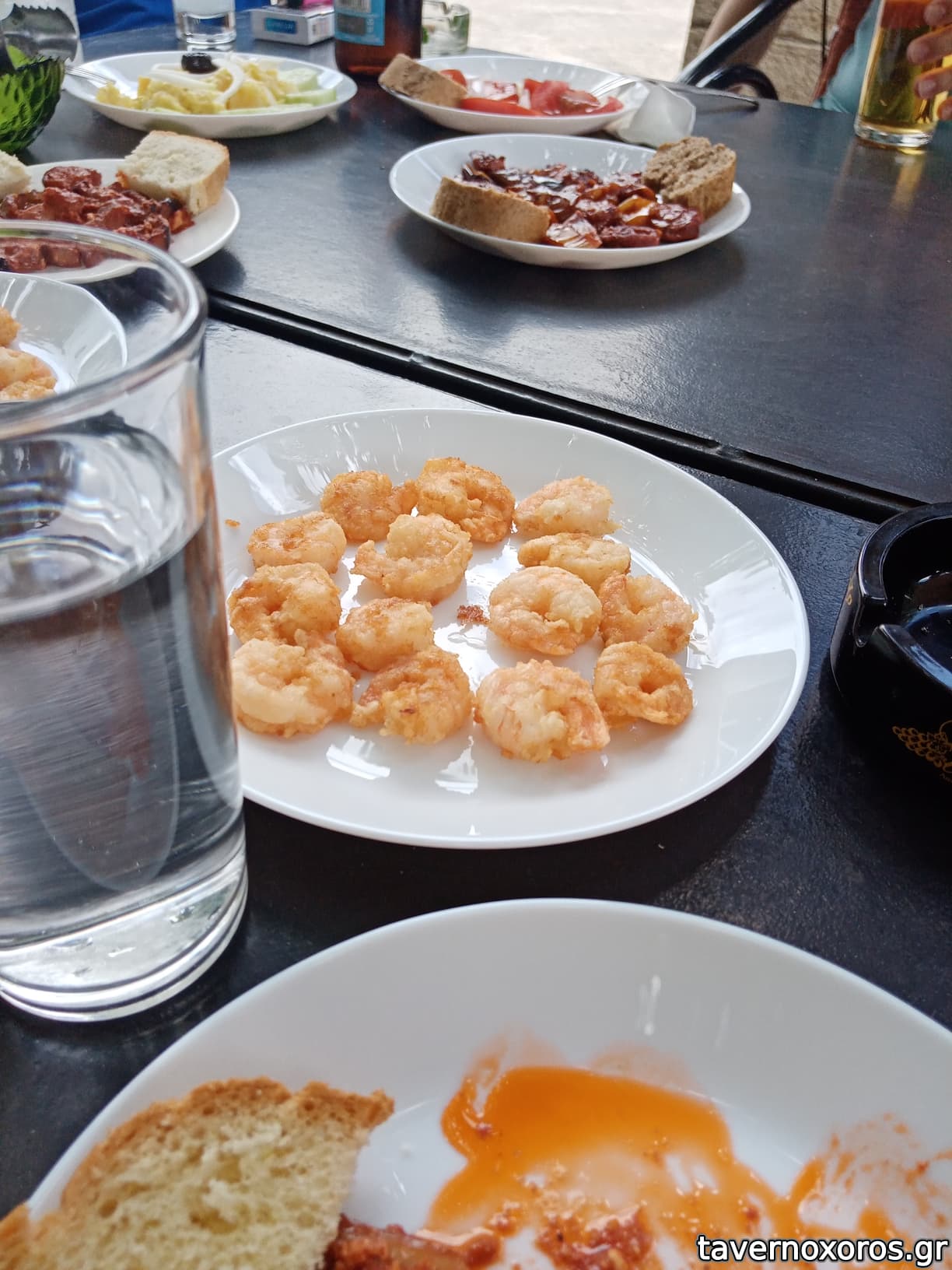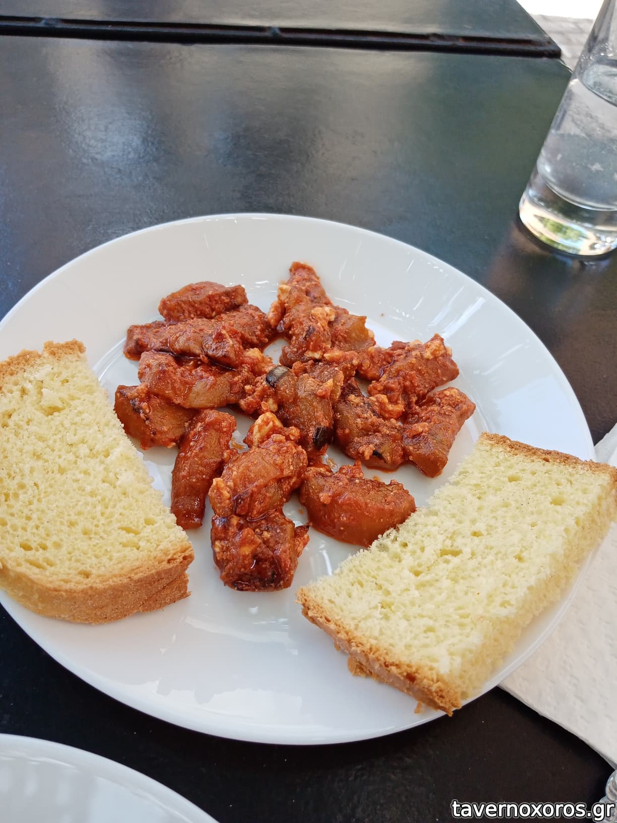 Μεζέδες: ομελέτα με πατάτες και μελιτζάνα (με το καραφάκι τσίπουρο το οποίο ήταν πολύ καλό)