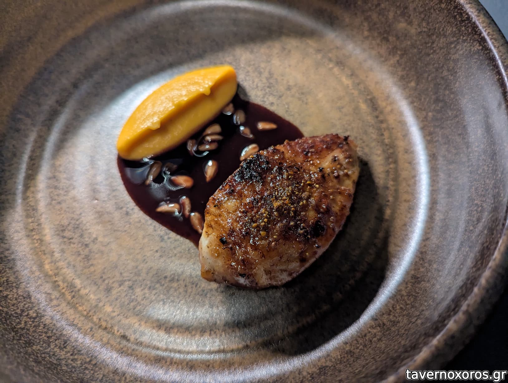 Στάδιο 5/16: "πάπια, κρασί πόρτο, miso, μύτες κακάο" (καλό)
