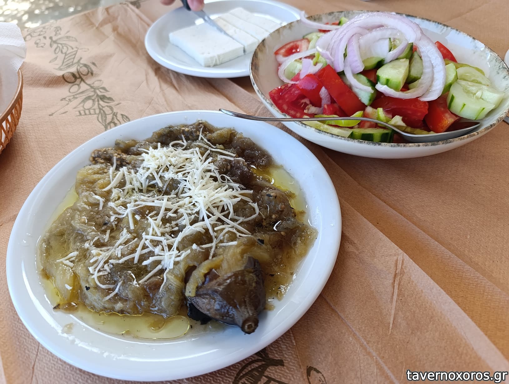 Αγγουροντομάτα (4€), φέτα (4€), μελιτζάνα ψητή (4,5€)