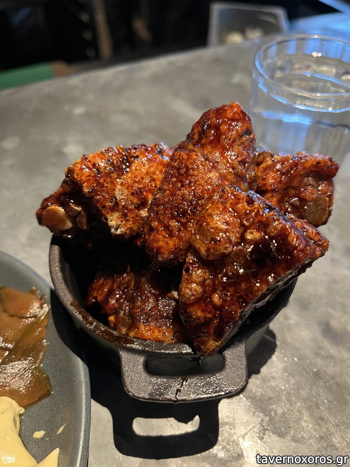 Οι γουρουνοουρές αν και νόστιμες, νιώθεις τις αρτηρίες να βουλώνουν. Μου θύμισαν τσιγαρίδες απλά με λίγο κοκκαλάκι. Μαζί σου φέρνουν και νερό για να βουτάς τα χέρια σου γιατί κολλάνε πολύ. Η σαλάτα τελείως αδιάφορη και δεν υπήρχε λόγος να την πάρω.