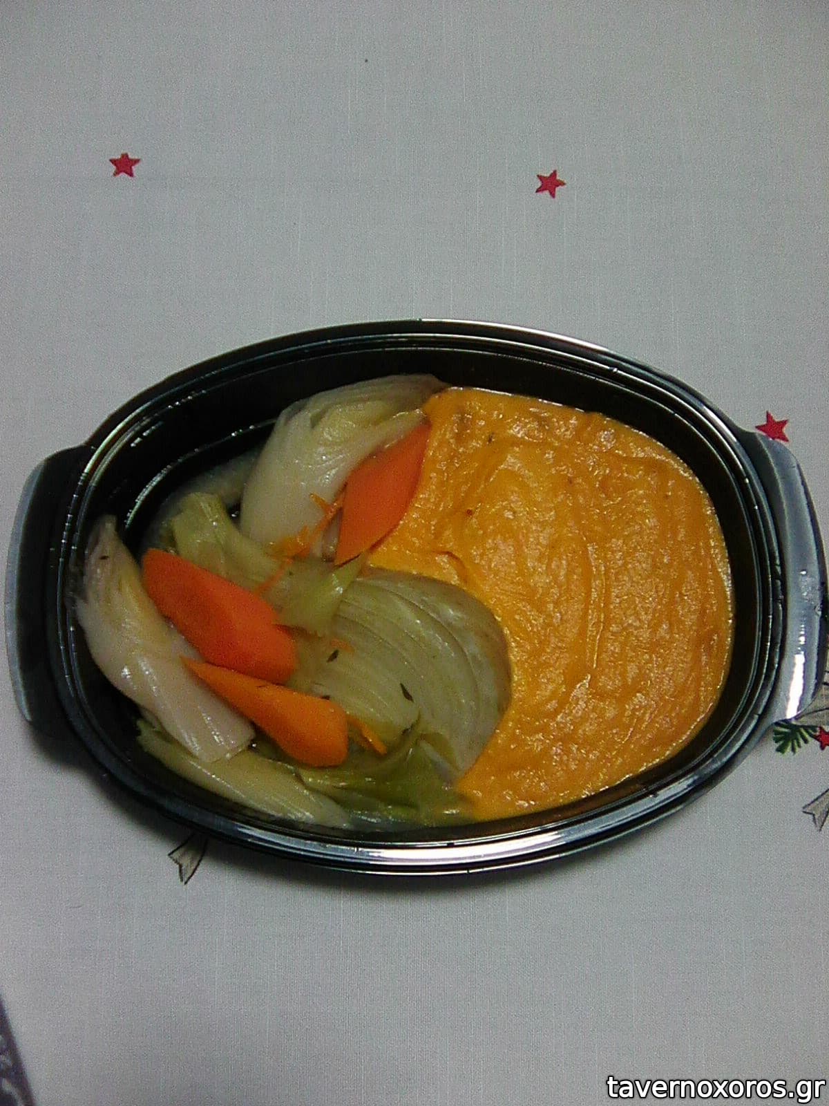Λαχανικά μπρεζέ και πουρέ γλυκοπατάτας