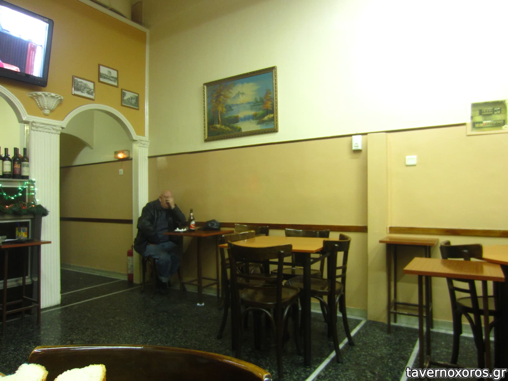αισθητικη παλιου καφενε, λιγος κοσμος, μερικα τραπεζακια στο πεζοδρομιο