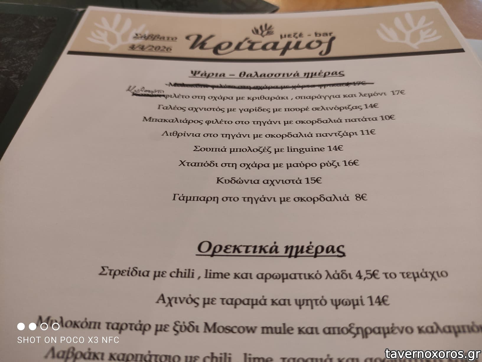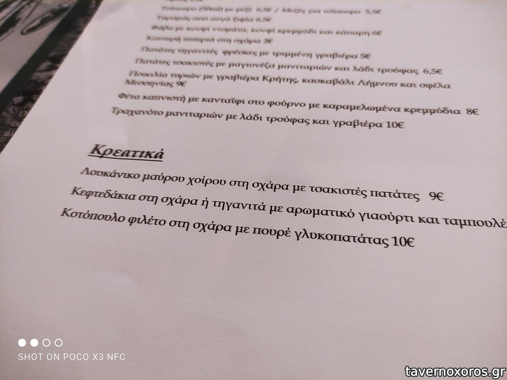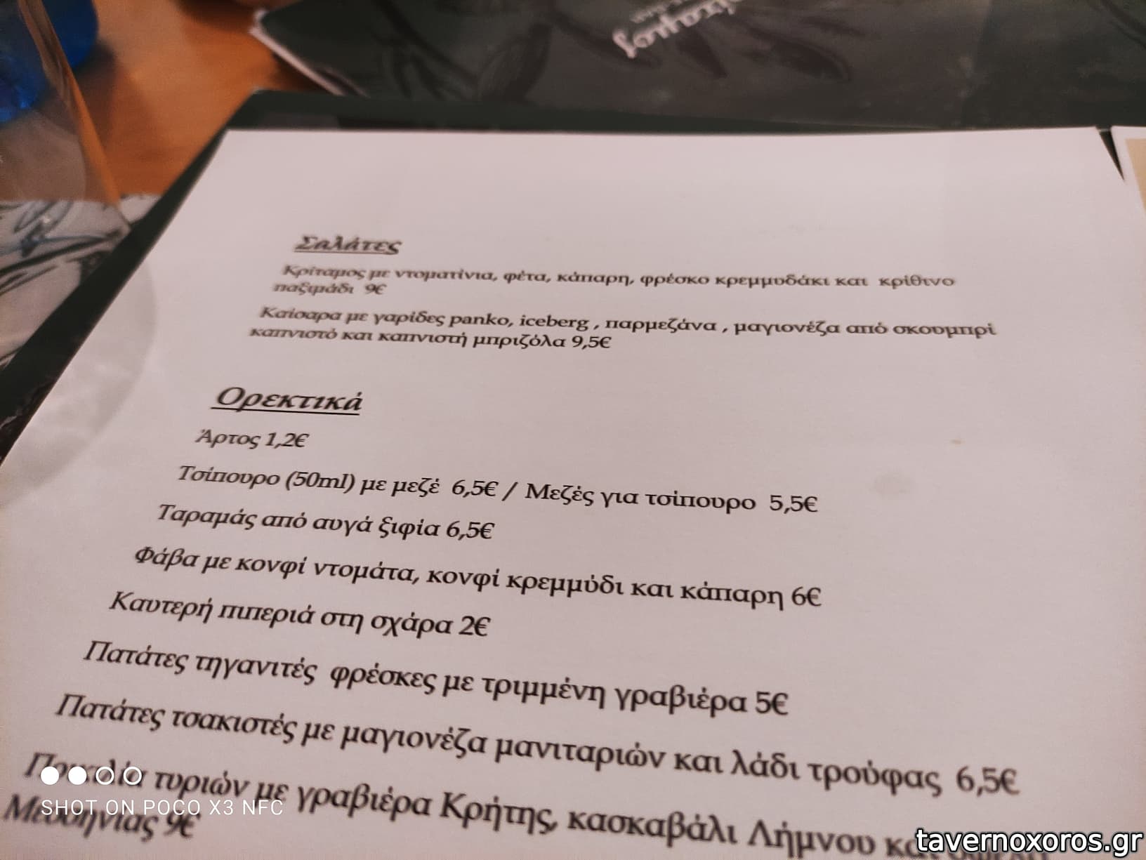 και μεζέδες ούζου (κάποια πιάτα επαναλήφθηκαν σε μικρές ποσότητες) συν: