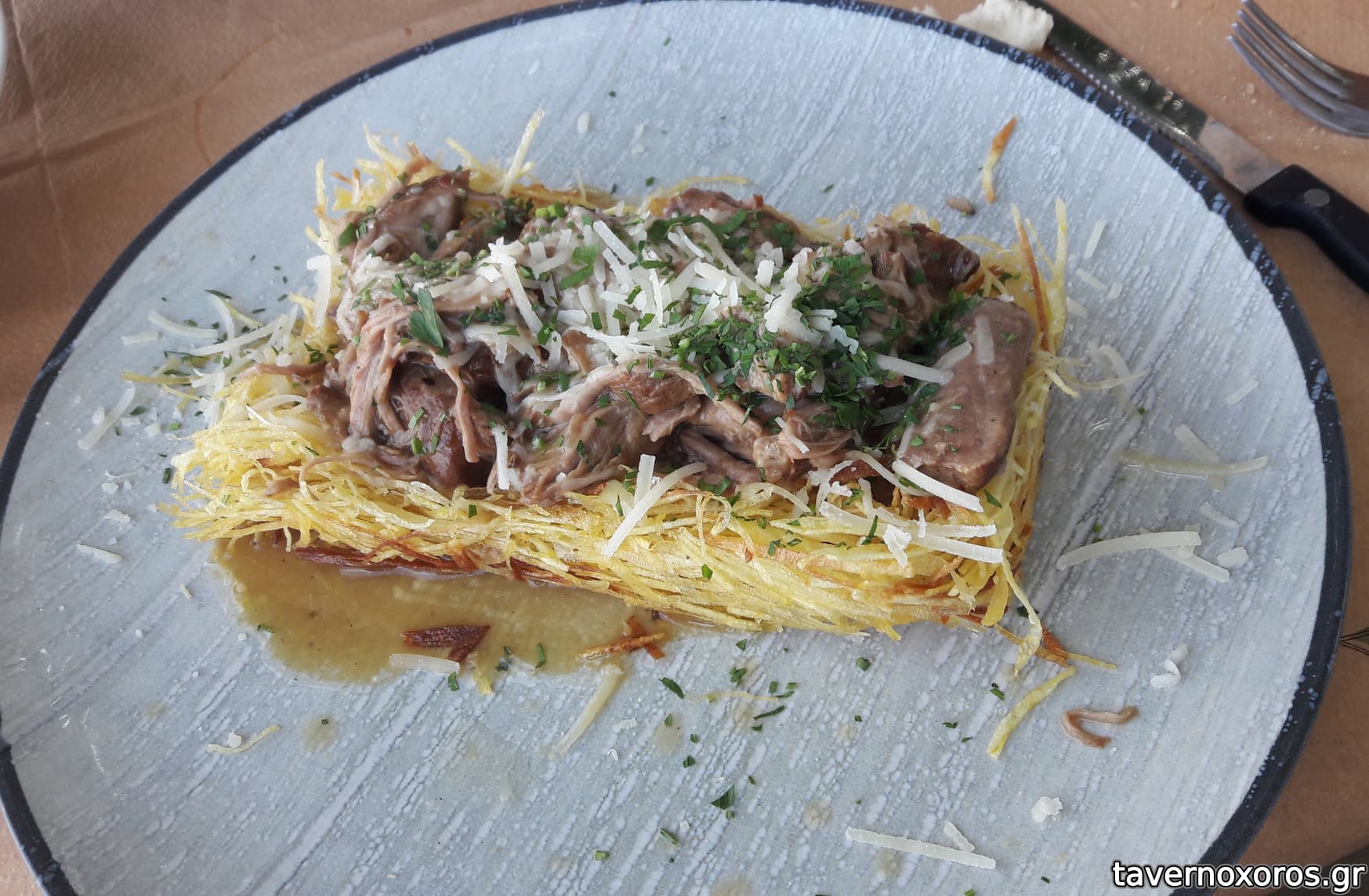 Μελωμένο χοιρινό σε τηγανίτα πατάτας (εξαιρετικό)