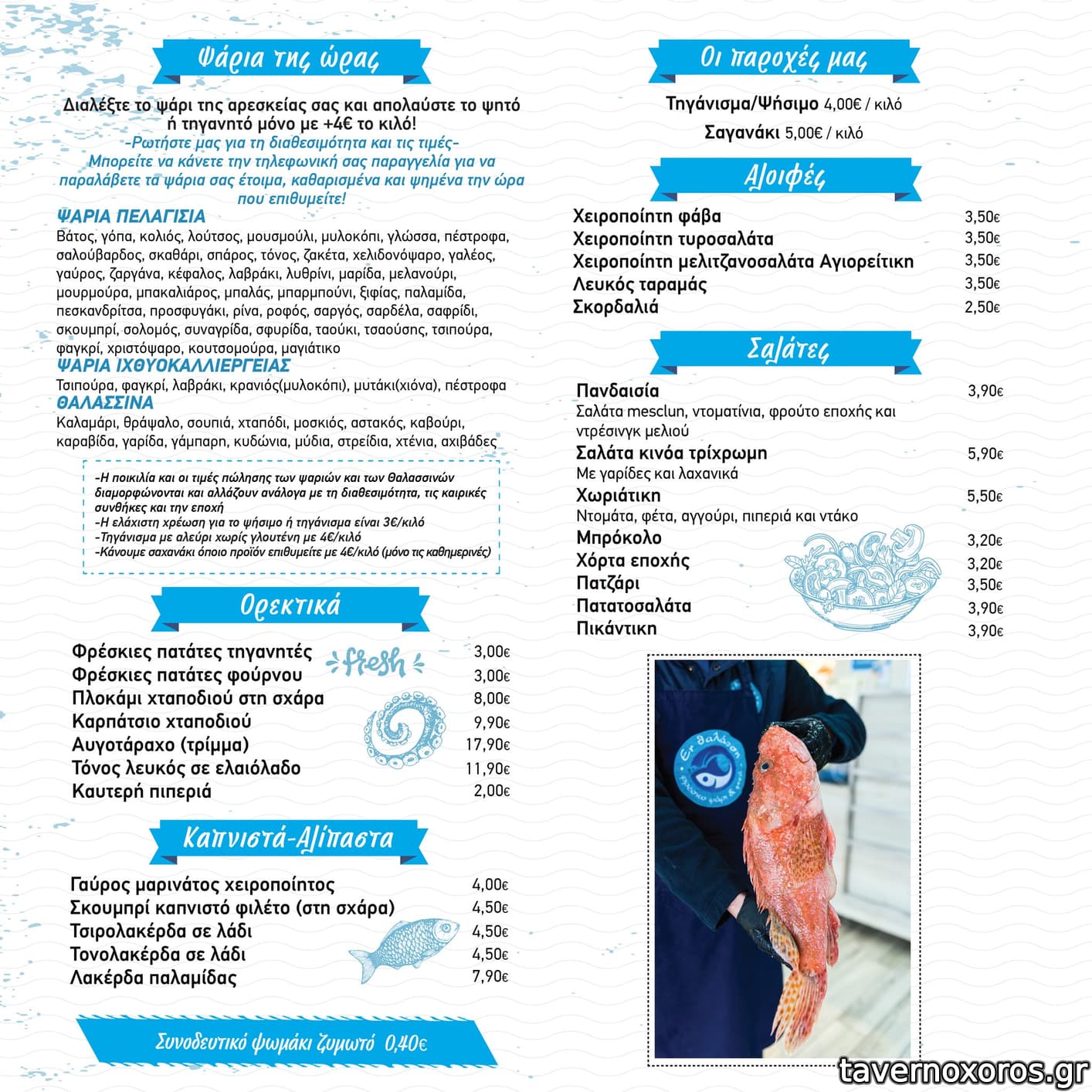 Και το ψάρι αλλά και οι πατάτες, ιδανικά ψημένα και με γεύση. Η σαλάτα, μικρή μερίδα.