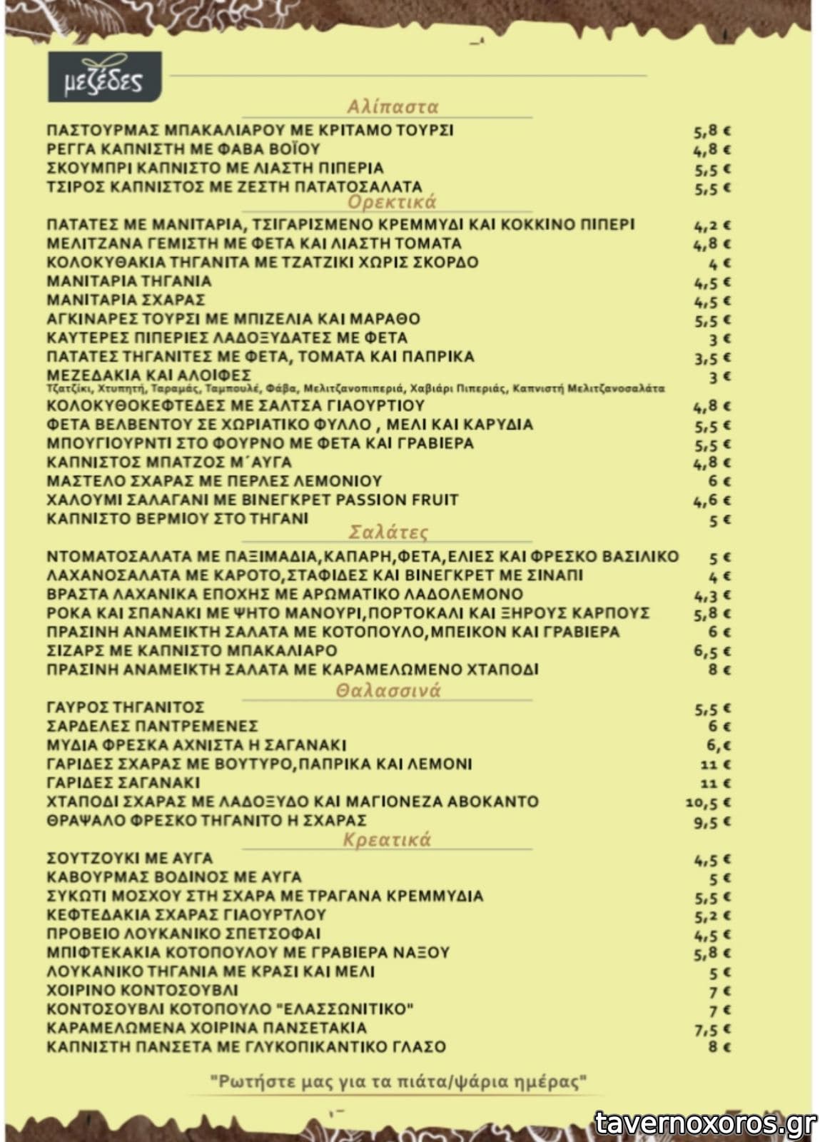 | Λέξεις κλειδιά | #ρέγγα, #αγκινάρες, #κολοκυθάκια, #μανιτάρια, #ταμπουλέ, #αϊβάρ, #μπάτζος, #κολοκυθοκεφτέδες, #μαστέλο, #αυγά, #χαλούμι, #γαύρος, #σαρδέλα, #χταπόδι, #μύδια, #γαρίδες, #θράψαλα, #σουτζούκι, #καβουρμάς, #συκώτι, #σουτζουκάκια, #λουκάνικο, #κεφτεδάκια, #σπεντζοφάι, #μπιφτεκάκια, #πανσέτα, #κοντοσούβλι |
