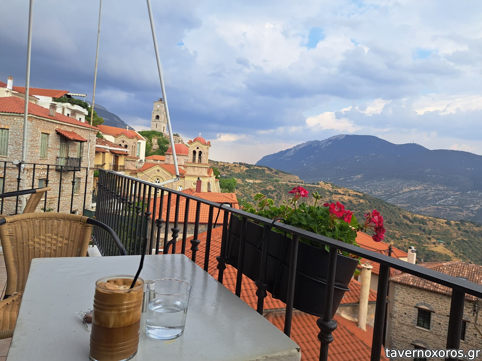 Μοναχική φραπού στο μπαλκονάκι με θέα