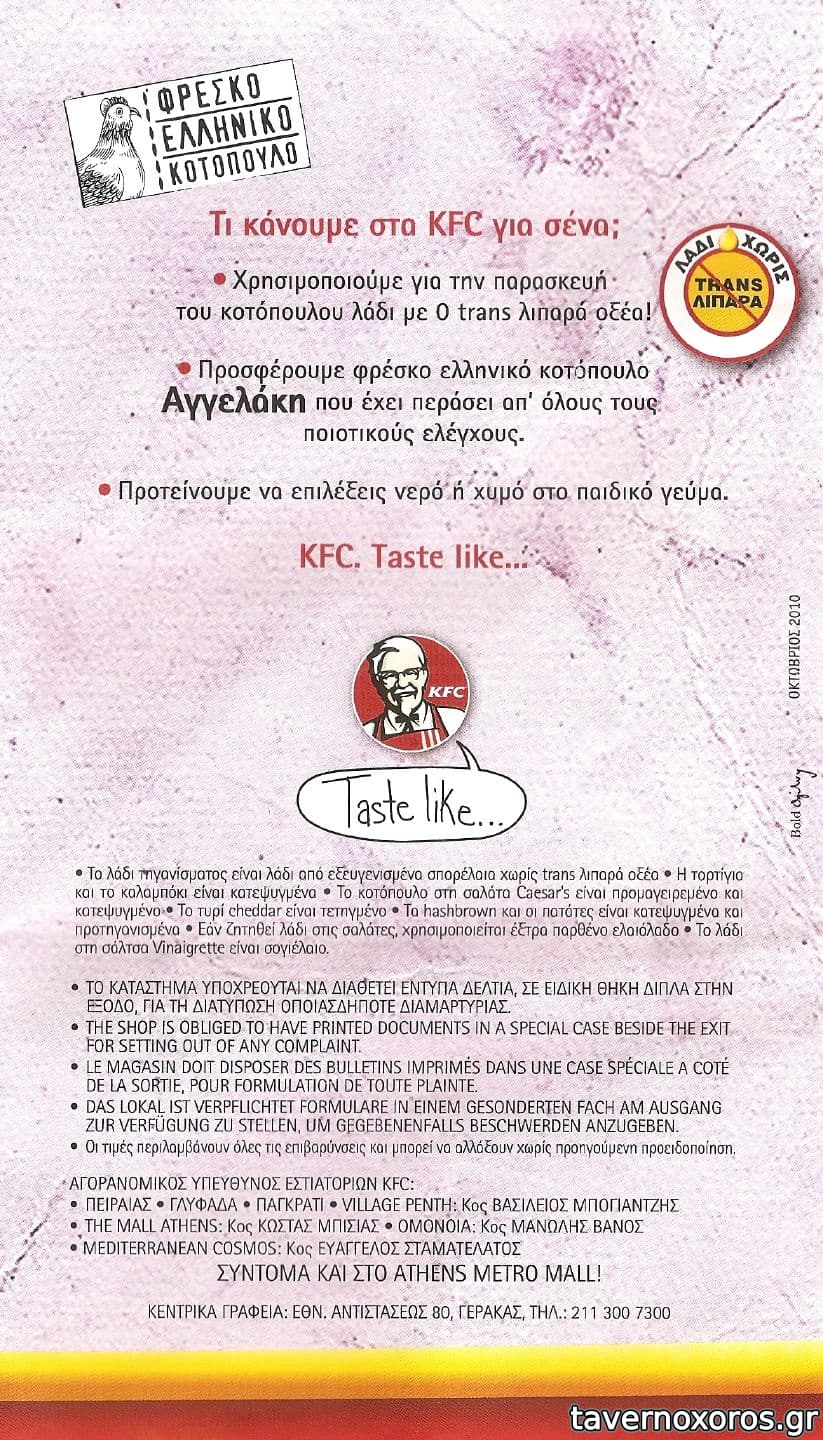 Συνοψίζοντας, είναι μια (κατώτερη κατ' εμέ) εναλλακτική από το κοτόπουλο στα κάρβουνα που όμως αξίζει τον κόπο πού και πού. Οι τιμές του παραδόξως δεν είναι πολύ ανεβασμένες-σε σχέση με τα KFC σε άλλες ευρωπαικές πόλεις.