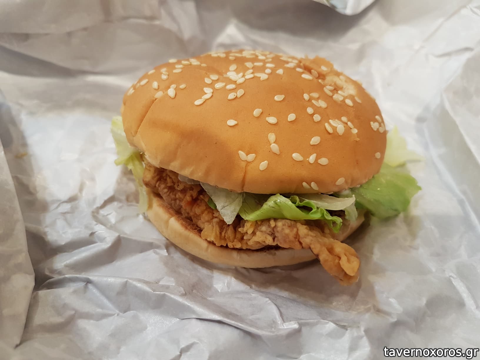 Δυστηχώς το κινητό δεν είχε μπαταρία για να βγάλω φωτό, γιατί οι λέξεις δεν επαρκούν να αποδώσουν το αίσχος. Ένα κακομοίρικο πατημένο ψηλομπαγιατισμένο ψωμάκι μεγέθους cheeseburger από McDonalds στο κέντρο του οποίου ήταν μία ΜΠΟΥΚΙΑ(κομμάτι/μπέργκερ δεν το λεγες σε καμία περίπτωση)