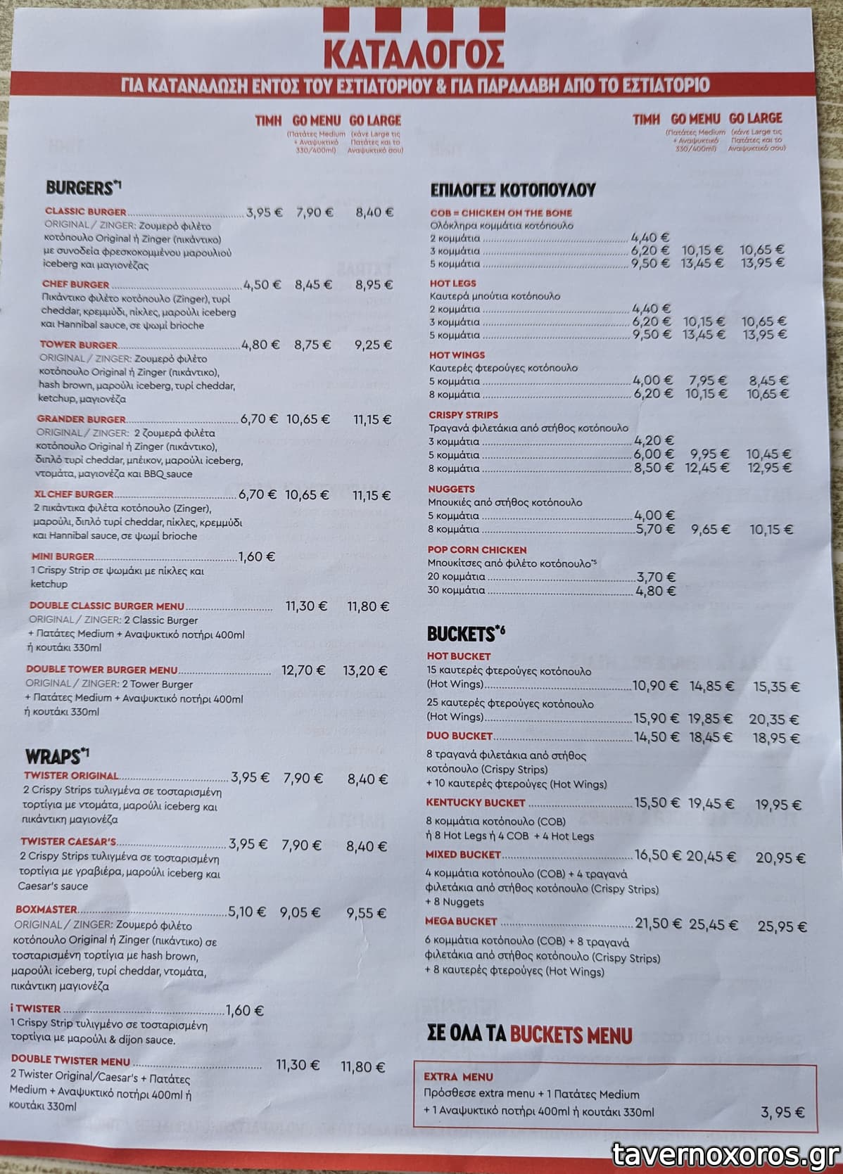 Τρία με τέσσερα άτομα σκάνε στο φαγητό με €22. Στα θετικά ότι σε μπορείς να κάνεις ευέλικτο mix στο bucket (μπούτι/στήθος/φτερούγα, καυτερό/απλό).